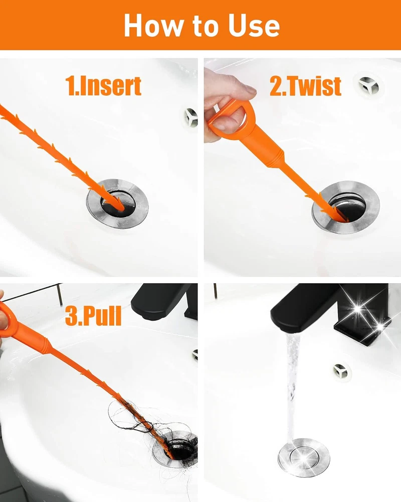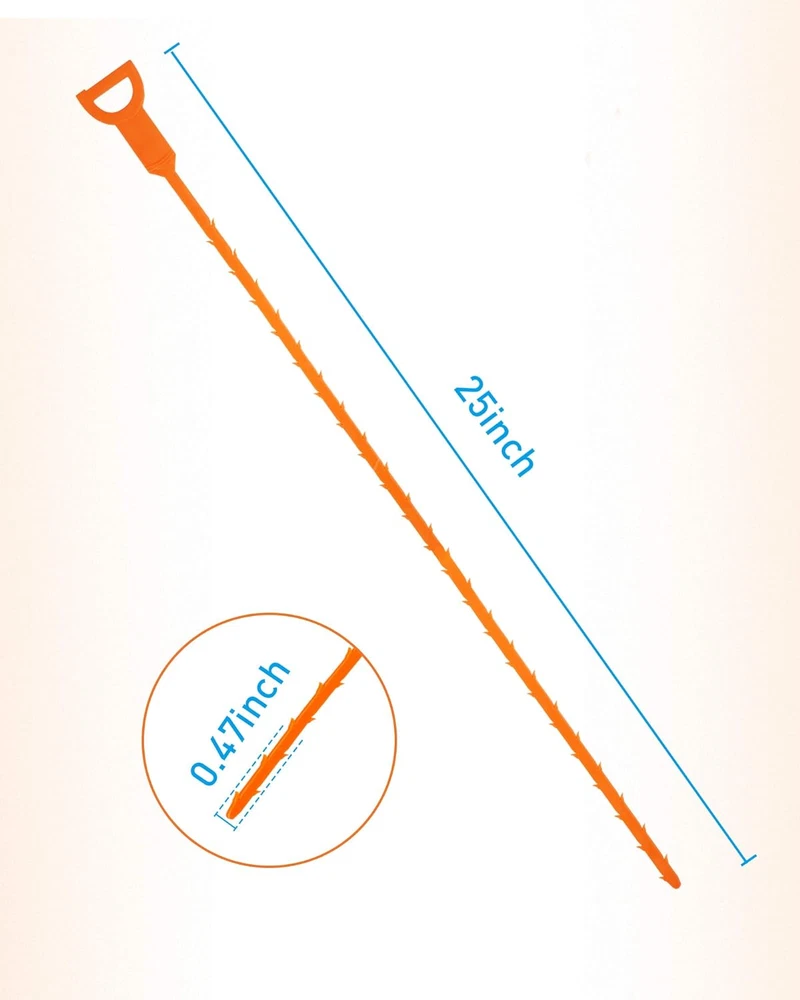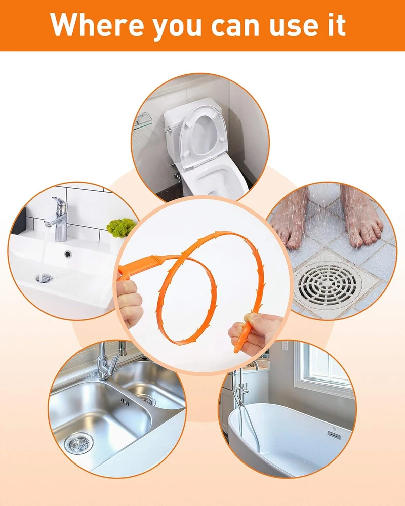 【PERFECT COMBINATION】6 pack * 25 inch plastic drain clog remover tools has enough quantity, drain hair clog remover can be used for a long time. 【HIGH QUALITY& FLEXIBLE】The drain cleaner hair clog remover tool is made of durable modified polypropylene, sink snake is more durable not easy to snap or break. The excellent flexibility of barbed can easily bend into P-trap that the drain where most clogs occurred and snag hair clogs, and other blockages to achieve a high clean effectively. 【EXCELLENT LENGTH】 The drain hair remover has long size: 25icnh, shower drain clog remover tool long enough can meet diffrent drains, hair drain clog remover very flexible, drain cleaner sticks to insert to deep pipes, hold the loop, easily pull out blockages. 【EASY OPERATION】Just hold sink clog remover tool handle loop, insert, pull sink cleaner from up and down and rotate a few times till remove clog, toilet snake won't clamp hand while operating, nor entangled by hair, drain cleaner easy and safe to rinse off then storage. 【ENVIRONMENTAL & WIDE APPLICATION】Sink snake drain hair removal tool for kitchen sink, toilets, washbasin, bathtubs, sewers etc. Unclog sink drain more safer than chemical cleaners, sink drain cleaner tool you used, your home will be no unpleasant taste, healthier and safer. Product Description Drain Clog Remover Tool Color: Orange Quantity: 6 Pcs Size: 25 Inch Material: PP with good toughness It’s more safer than chemical cleaners, will be no unpleasant taste, healthier and safer. Just hold the handle loop, insert, pull it from up and down and rotate a few times till remove clog, won't clamp hand while operating, nor entangled by hair, easy and safe to rinse off then storage.
