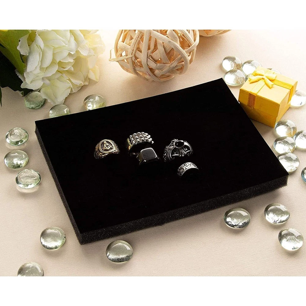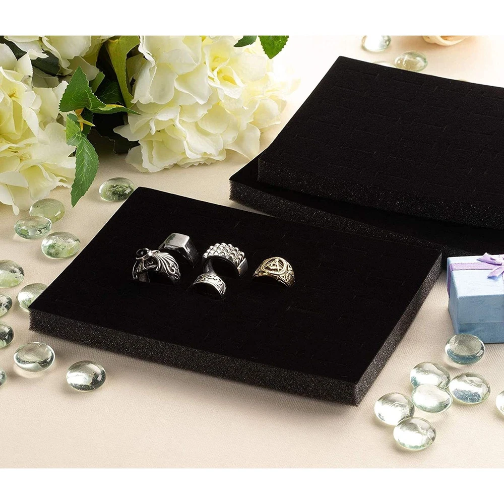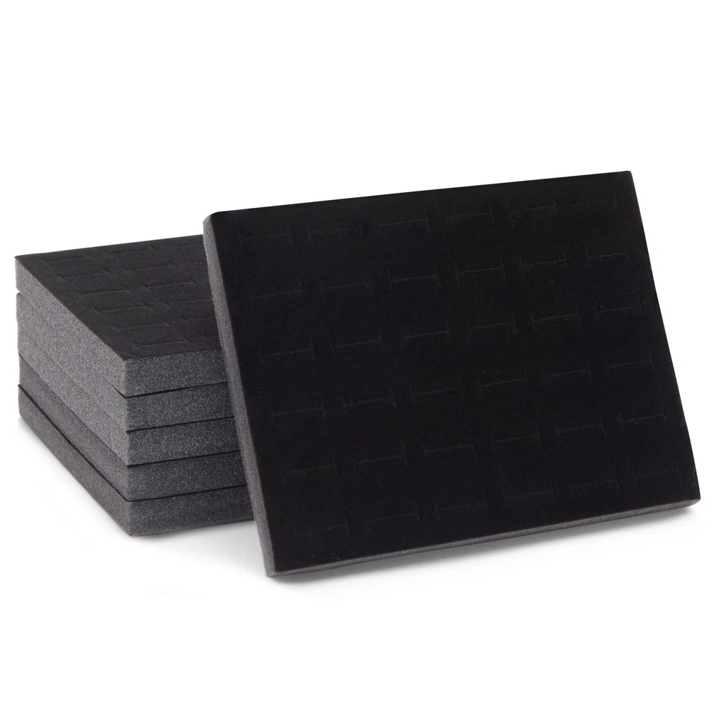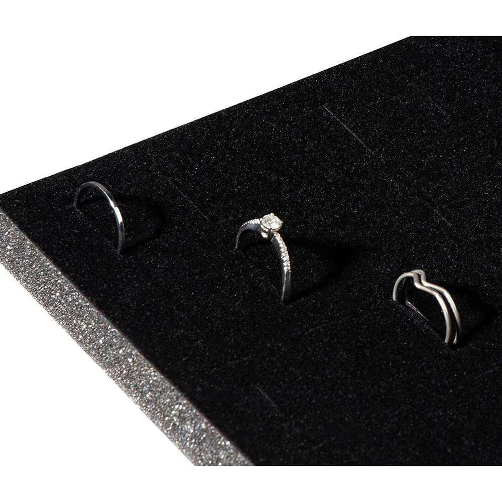 6 Pack Black Velvet Ring Organizer for Jewelry Displays and Cases, Retail, Travel, 36 Slot Foam Insert Stud Earring Holder (7.5 x 5.5 x 0.5 In) Ring Holder for Jewelry: Upgrade your jewelry organization with this pack of 6 black velvet ring trays; with 36 convenient slots you can neatly store and hold your favorite rings, earrings, brooches, and small studs For Personal or Professional Use: Utilize the foam ring holder insert at home or display it elegantly while selling jewelry at a store or boutique; each insert is an ideal addition to your small business supplies Smooth, Velvet Material: The velvet material on each jewelry foam insert offers a plush cushion for accessories to be inserted and easily removed, cut to fit your display Practical Storage: Display your collection in style; each of these ring display inserts measures 7.5 x 5.5 x 0.5 inches, cut to fit securely and snuggly in a jewelry box Comes With: You will receive 6 velvet black foam ring display trays, each containing 36 slots for jewelry and accessories; NOTE: the rings shown in the photo are not included Never be afraid to lose your precious accessories again! This 6 pack of black velvet organizers is just the perfect way to get all of your jewelry in order. Instead of throwing them into a cupboard or drawer, align and organize them nicely in these display pads. If you're looking to sell, they also work great as part of an elegant, charming display in a jewelry store. The velvet jewelry display measures 7.5 x 5.5 x 0.5 inches. The rings shown in the photos are NOT INCLUDED. Shipping We offer FREE shipping on all orders! We ship within Three business days of payment, usually sooner. We use a selection of shipping services such as UPS, FedEx, USPS etc. We only ship to the lower 48 states, no APO/FPO addresses or PO Boxes allowed. Local pickups and combined shipping options are not provided at this time. Return You can return a product for up to 30 days from the date you purchased it. Any product you return must be in the same condition you received it and in the original packaging. Please keep the receipt. Payment We accept payment by any of the following methods: PayPal Please pay as soon as possible after winning an auction, as that will allow us to post your item to you sooner! Feedback Customer satisfaction is very important to us. If you have any problem with your order, please contact us and we will do our best to make you satisfied. Contact Us If you have any queries, please contact us via ebay. We usually respond within 24 hours on weekdays. Please visit our eBay store to check out other items for sale! Thank you for shopping at our store.