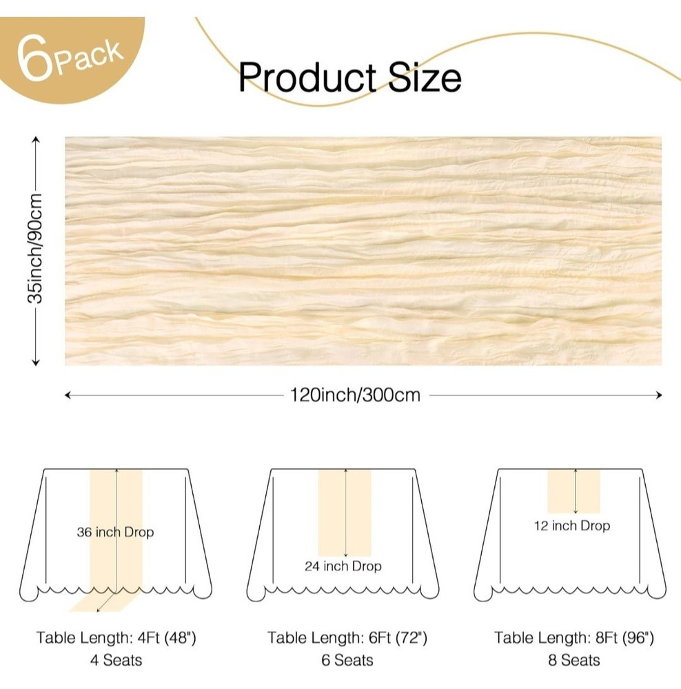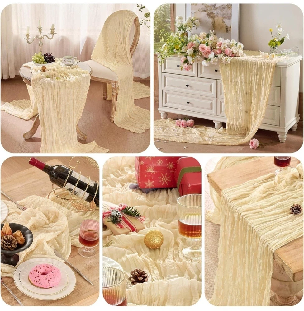6 Pack Cheesecloth Table Runner 120 Inch Boho Rustic Gauze 10 FT Beige Cheese Cloths Table Runners Decorations for Spring Summer Birthday Party Baby Shower Wedding Holiday Home Decor #12.10.26