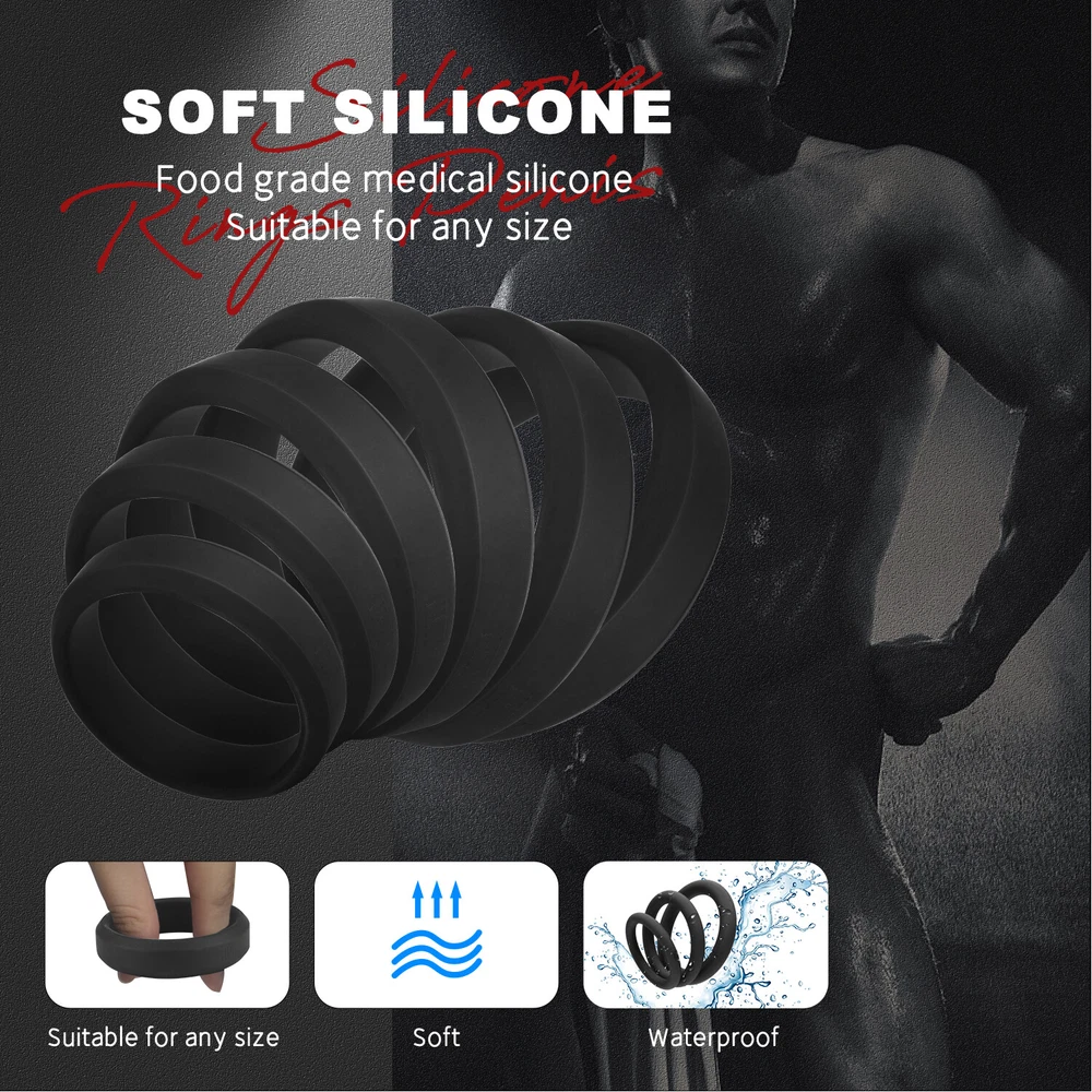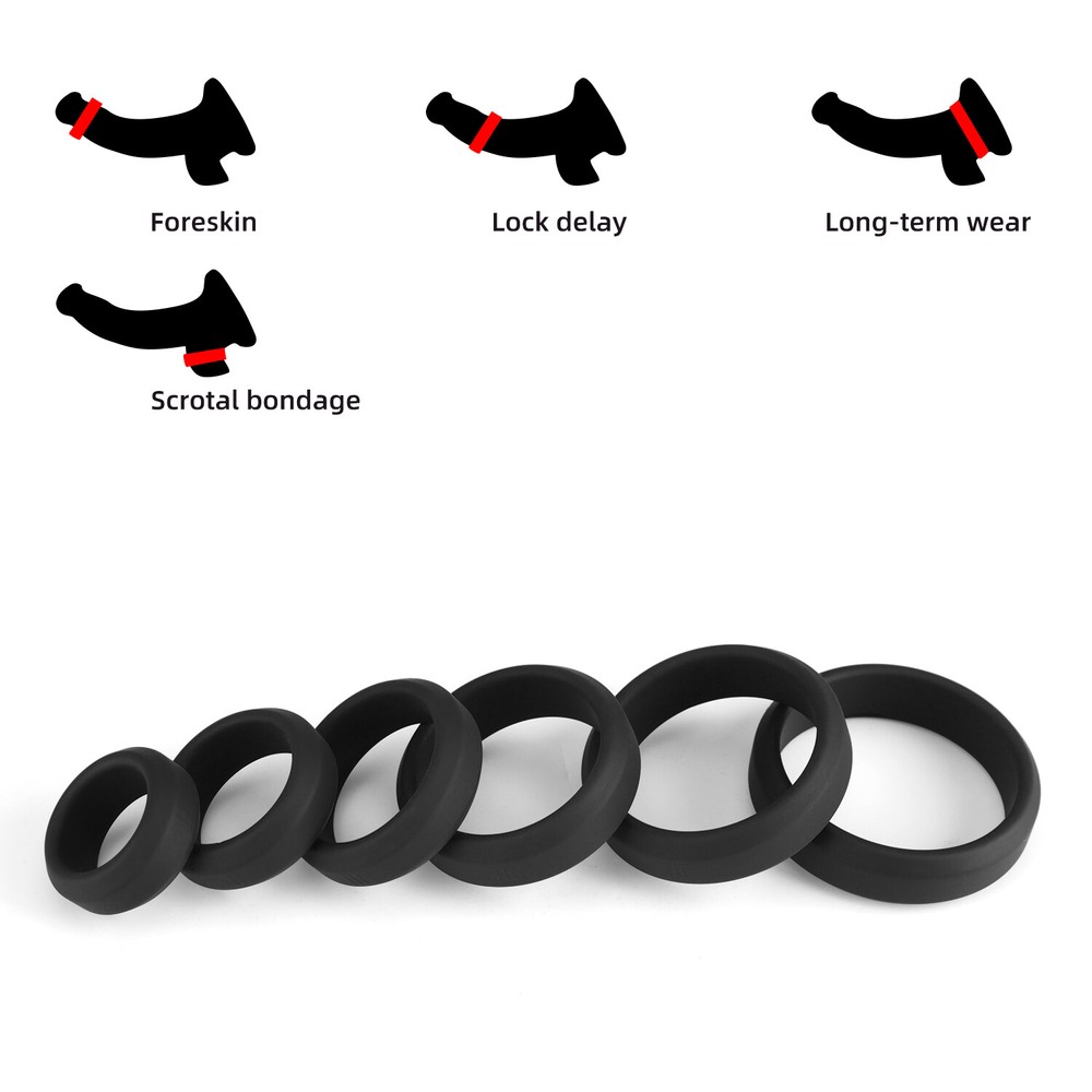 Penis Ring Features: Product Description: 100% brand new and high-quality made. Made of superior silicone, it is soft, skin-friendly and odorless. Capable to bound testis and penis simultaneously which enlarges erection and enrich sexual enjoyment for couples. Switch up wearing locations for continued fun and excitement. Waterproof for even more excitement. Comes with 6 different sizes. Package includes: 1/6PCS*Penis Ring for your choice