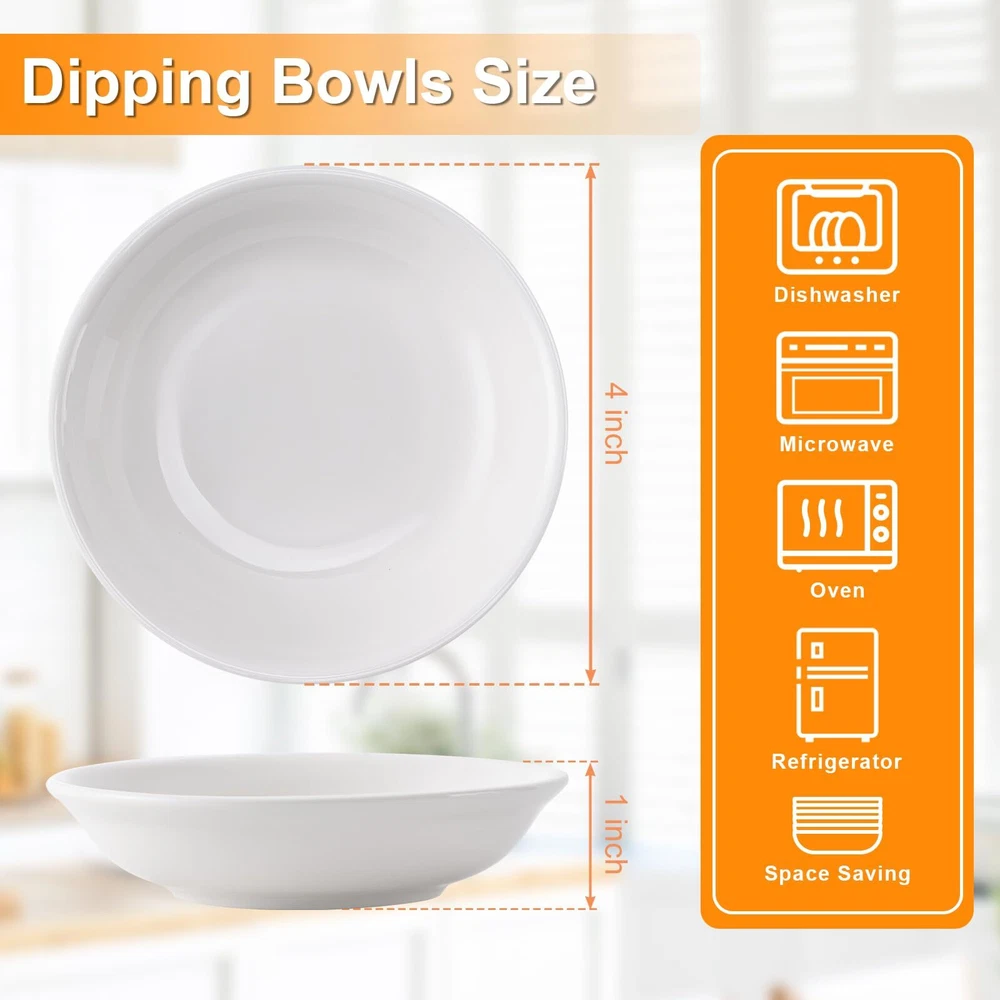 6 Pack Dip Bowls, 3 OZ Ceramic Soy Sauce Dish, White Dipping Sauce Bowls Small Dishes Serving for Tomato Sauce, Soy, BBQ Party Supplies HIGH-END PORCELAIN: dipping bowl is made of food-grade premium ceramic, non-toxic and harmless, safe, healthy, sturdy, beautiful and easy to clean. Oven, Microwave and Dishwasher safe. PERFECT SIZE: Diameter: 4", Height: 1", Capacity: 3 oz, it is compact in size and perfect for serving salad, soy sauce, ketchup etc., efficient stackable storage design saves your kitchen space. EASY MAINTEINANCE: The smooth white ceramic glaze is calcined at a high temperature for sturdiness and durability, comfortable feel and no cracks to prevent residue buildup. VERSATILE USE: A set of 6 for your daily needs, perfect for tea rest like snack, nuts, candy, ice cream and great for prepping ingredients, spices and condiments. NICE ADDITION: A nice kitchen accessory to make food more appetizing when sharing delicacies with others at home, restaurants, catering halls, parties. Shipping We offer FREE shipping on all orders! We ship within Three business days of payment, usually sooner. We use a selection of shipping services such as UPS, FedEx, USPS etc. We only ship to the lower 48 states, no APO/FPO addresses or PO Boxes allowed. Local pickups and combined shipping options are not provided at this time. Return You can return a product for up to 30 days from the date you purchased it. Any product you return must be in the same condition you received it and in the original packaging. Please keep the receipt. Payment We accept payment by any of the following methods: PayPal Please pay as soon as possible after winning an auction, as that will allow us to post your item to you sooner! Feedback Customer satisfaction is very important to us. If you have any problem with your order, please contact us and we will do our best to make you satisfied. Contact Us If you have any queries, please contact us via ebay. We usually respond within 24 hours on weekdays. Please visit our eBay store to check out other items for sale! Thank you for shopping at our store.