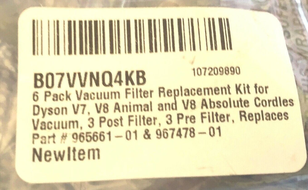 Just got this 6-pack filter set for my Dyson V8 and it fits perfectly! Super easy to install, and my vacuum runs like new again—super strong suction with no weird smells. Great value for the price, and the quality feels just like the original. Definitely stocking up on these!