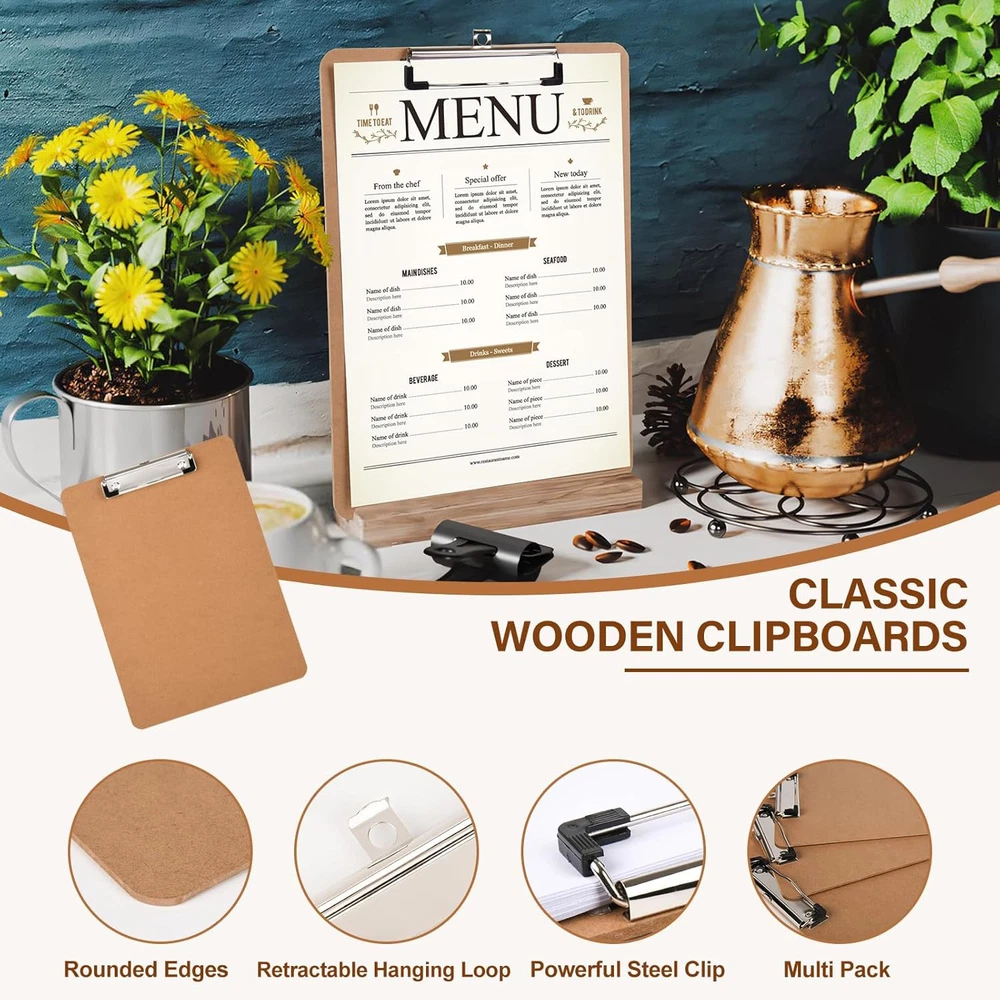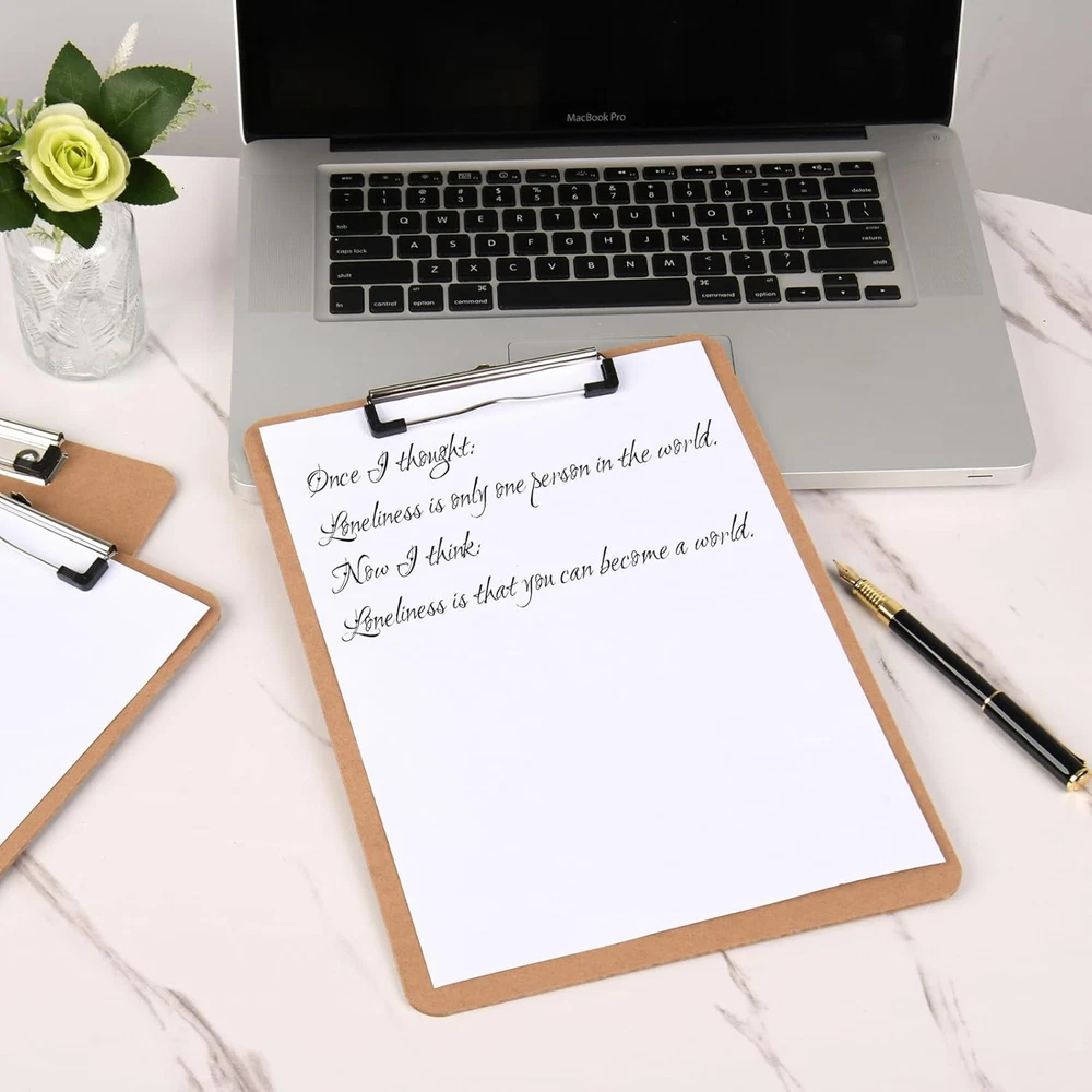6 Pack Hardboard Office Clipboard, Letter-Size Clipboard with Low Brown Product Details Manufacturer: YEAHVIY Brand: YEAHVIY Item Weight: 2.55 pounds Product Dimensions: 12.5 x 8.94 x 0.04 inches Item model number: md0p-3 Color: Brown Material Type: Wood Number of Items: 6 Fastener Type: Low Profile Clip Sheet Size: Letter Manufacturer Part Number: md0p-3 Color: Brown Material: Wood Brand: YEAHVIY Sheet Size: Letter Product Dimensions: 12.5"L x 8.94"W Powerful steel clip: Worried about paper sheets falling off? Hardboard Clipboards comes with a low-profile steel clip with spring and PP corner ensures a secure grip, holds paperwork securely. Each of these clip boards have a retractable hanging loop, easy to hang it on a wall for quick access and stow away when not needed Smooth and Easy Writing Surface: Premium quality boards construction creates a smooth, flat and firm surface for writing notes, sign documentation or review paperwork and outdoor use. Letter-size clipboard will last years Easy to Use: Brown wooden clipboards with 3mm thickness fiberboard base and rounded edges for long-lasting use and a comfortable grip. Perfect, smooth writing experience for any environment. Lightweight and compact design allows you to easily carry it with you while on the go Measures 12.5" L x 8.94" W, the right size for fitting easily in a backpack. Holds letter-size papers and pads. The low-profile clip allows for easily stacking multiple clipboards together, easy to organize and takes up less space Multi pack clipboards - lightweight and durable designed specifically for your busy paperwork. Widely used in offices, hospitals, schools, clinic, warehouse, home. Loved by business professionals, nurses, teachers, students, lawyers