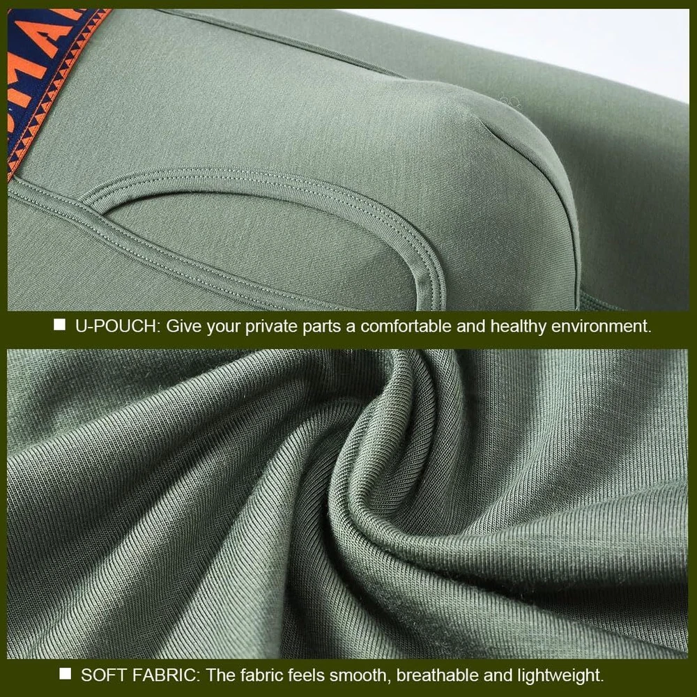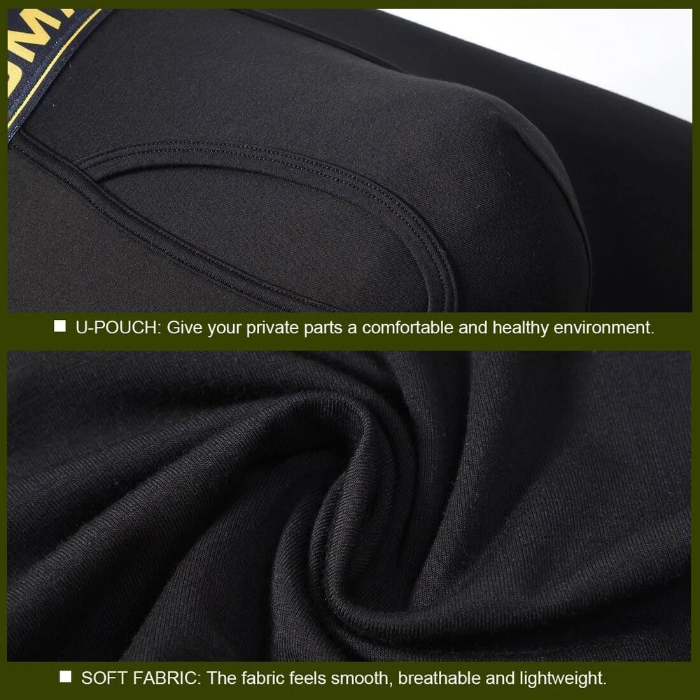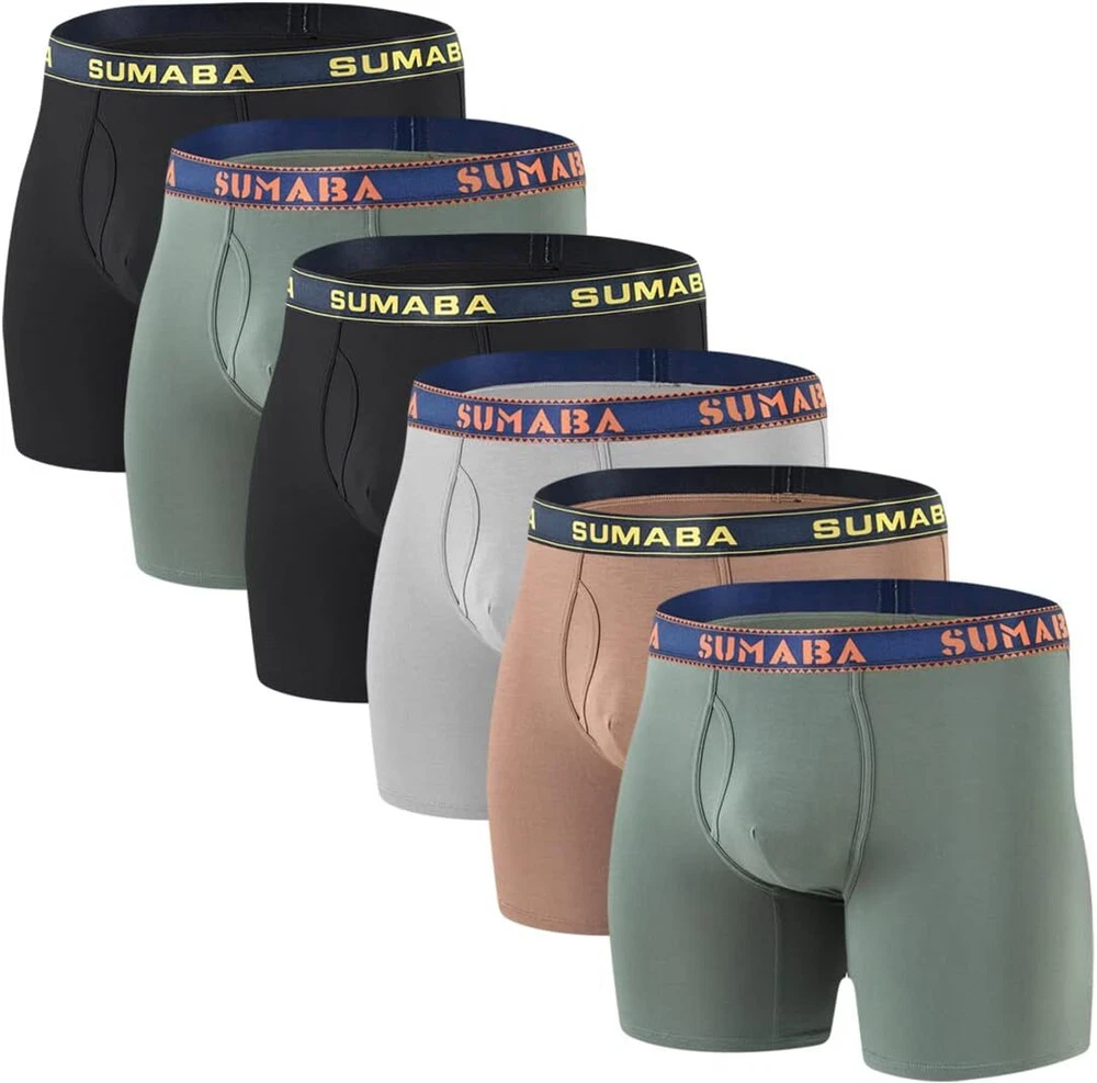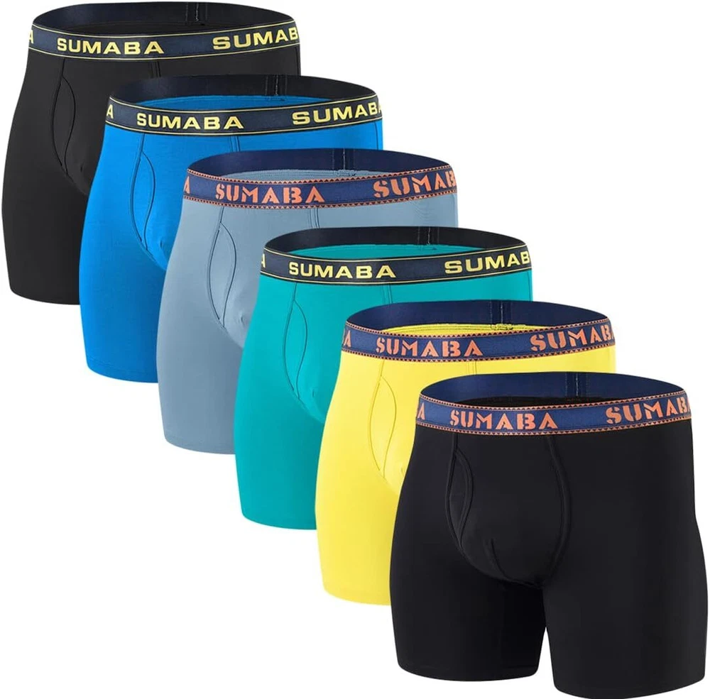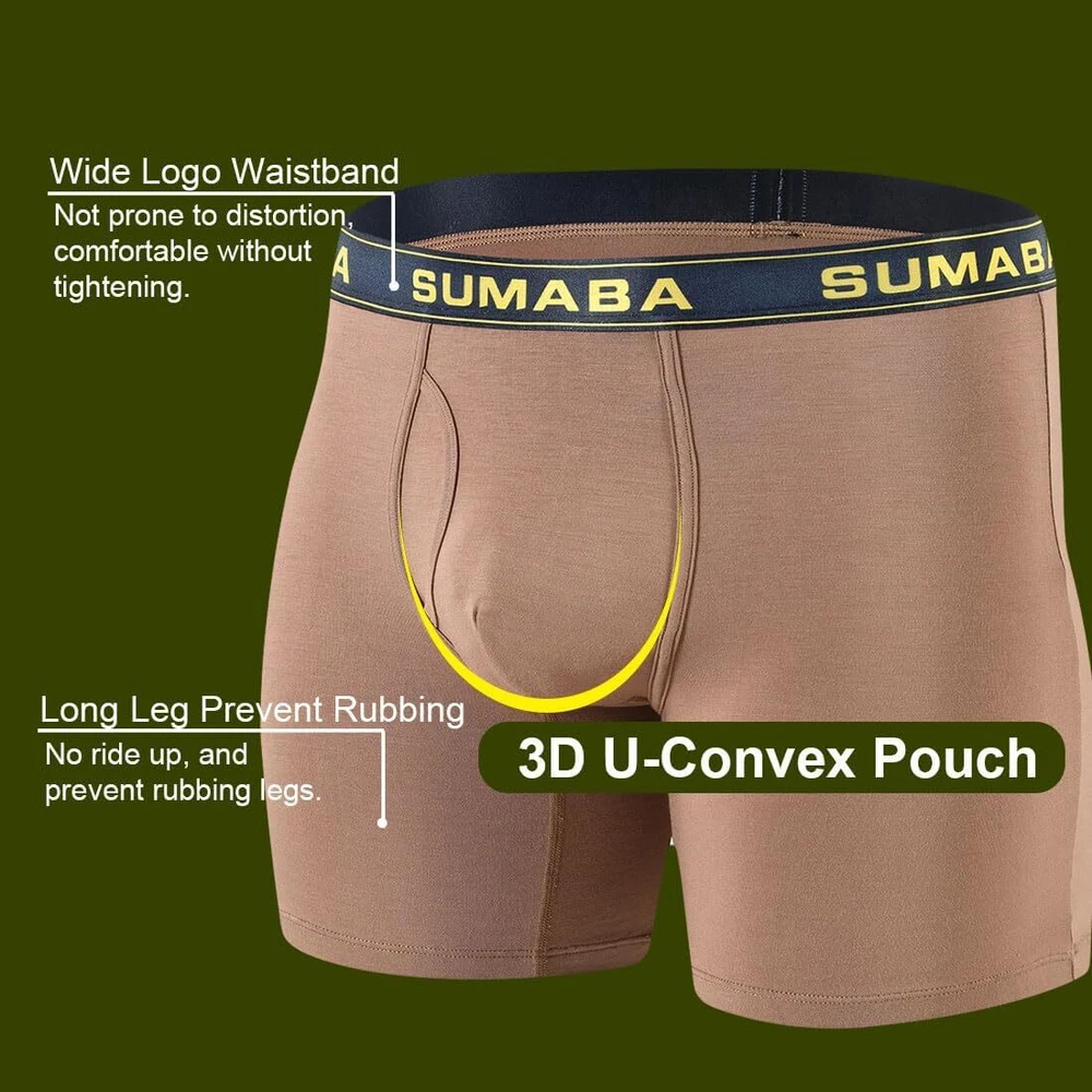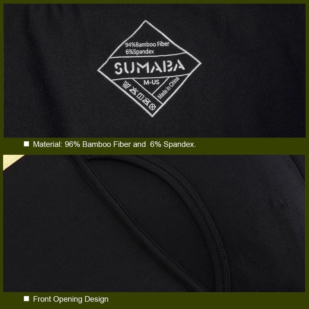Product Description SUMABA Moisture Wicking Underwear for Men KEY FEATURE: Premium Underwear Material: Made from 95% Bamboo Fiber and 5% Spandex, Super soft, Breathable, Stretch, Anti-Wrinkles. No Ride Up & Avoid Thigh Friction: With 6" Longer Leg Length, No Ride Up More Fitted to the Leg, and Effectively Prevent Pain Caused by Leg Friction. U-Pouch & Open Fly: With U-Pouch Design, Can Provide Good Support to Men. Pocket Open in Front is Easy-Go When Nature Calls. Tag-Free Label and Logo for All-Day Comfort. Healthy Fabric and Soft Touch: Bamboo Fiber is a Natural Material More Skin-Friendly and Feels Very Soft. Smooth Non-Chafing Stitching: No Sides Visible Seaming and Back Seam Feel Smooth on Your Skin. Material: 94%Bamboo Viscose and 6%Spandex The fabric is very soft, skin-friendly and breathable, leaving you comfortable all day long. No Roll Waistband The 1.38 inch wide waistband does not tighten the waist and is comfortable without marks. Mens Underwear with Pouch Open Front Double layer pouch open front , three-dimensional space is more comfortable and convenient. No Inductive Hot Dtamping Label No feeling label, more comfortable and frictionless.
