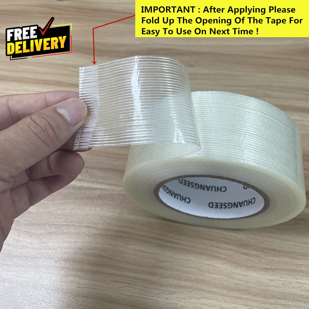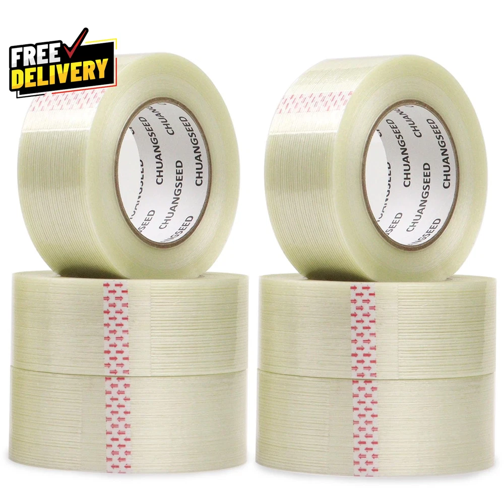 6PACK Reinforced Packing Tape, 5.5Mil 2Inx 60Yds, Heavy Duty Fiber Strapping Ad