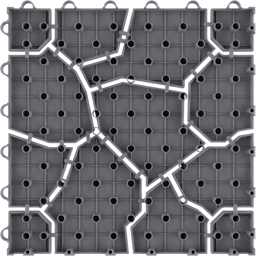 6-PACK OF OUTDOOR PAVERS - This 6-pack of balcony flooring pavers allow airflow and water drainage for durability. Constructed from weather- and fade-resistant materials, these floor tiles won't swell or decay and work well in direct sunlight. FUSS-FREE INSTALLATION - Install the patio deck tiles quickly and easily without using any tools. Before starting the installation of the campsite flooring, make sure that the installation area is properly leveled and flat and cleared of any debris. AMPLE COVERAGE - Plan DIY home improvement projects with these patio floor tiles to change the look and feel of your space. Each deck tile measures 11.5-inches and covers 5.5-square-feet in total, so you know how many you need to fit your space. VERSATILE USE - Use the outdoor tile as balcony décor, garage flooring, or patio accessories. An alternative to vinyl or wood floor tiles, the outdoor patio flooring has a stylish design that will enhance the look of any indoor or outdoor space. PRODUCT DETAILS - Materials: Polypropylene. Dimensions: Individual Tiles: (L) 11.5" x (W) 11.5" x (H) 0.5"; Coverage Area: 5.5-square-feet. Includes: 6 Tiles per Carton. Color: Stone Gray.