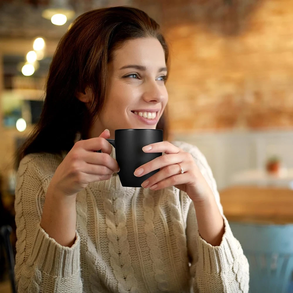 12 OUNCE & SET OF 6: The Coffee Mug Set of 6 has ample space so you can easily serve a full cup of coffee or hot chocolate. This coffee mug set must be a functional partner for your new day. It’s also perfect for a cup of mulled drinks, cappuccino, tea, cocoa with friends or family. COLORFUL MUGS FOR COFFER LOVER: Our mugs are available in blue, red, yellow, green, orange, purple as well as in a combination of 6 different colours. The matte black design gives them a minimalist and classy look. With their shiny and strong coloured inside they also hold a lovely colourful surprise. The cups come in unique designs, so there is no chance of mixing up your cup. STURDY AND WELL-MADE: The coffee mug set is made of premium LEAD-FREE and NON-TOXIC ceramic, which is very durable. These big coffee cups are designed to withstand rough use, including stacking. MICOWAVE AND DISHWASHER SAFE: The high-quality ceramic mug set is made from durable porcelain, easy to clean. Smooth curve means that they can be cleaned quickly. And the mug is perfectly safe to use in microwave, dishwasher, oven or freezer. PERFECT GIFT SET: The mug set is an ideal gift and matches well with any table setting. It can be gifted as a Christmas present or can be used as the perfect DIY mugs for decoration purposes. This tea cup will keep the happy, memorable, warm and joyful moments with your family and loved one. 3.3" (diameter) x 4" (height). Product description Vibrant Color Coffee Mugs The vibrant colors can easily enlighten your dining table and guests! Capacity: 12 oz Quantity: Set of 6 Material: High-fired Porcelain & Smooth Glaze Withstand the highest temperature: 500℉ Suited for hot and cold beverages SUPERIOR QUALITY Coffee mugs are manufactured using grade A quality porcelain. No lead & cadmium in Porcelain or glaze and are safe for daily use.These porcelain mugs won’t rust, stain, or get scratched up. They can be wiped down or hand washed. Dishwasher & Microwave & Freezer & Oven Safe. WIDELY USE Coffee Mugs perfectly fit your daily coffee, tea, cocoa, cappuccinos, milk, cereal, soup, oatmeal, salad, ice cream, etc. The large handle is designed to be comfortable to grip. You don’t have to worry about the heat anymore. PERFECT GIFT These solid set of 6 mugs set is an ideal set and matches well with any table setting. Making it a perfect gift for yourself, parents, housewarmings, mothers/fathers day gift, birthdays, holidays, wedding presents, and for any occasion.