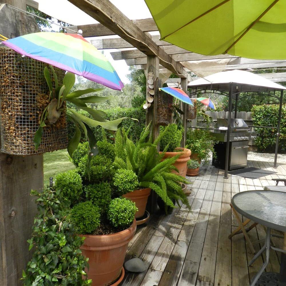 Description 6 Pack Umbrella Hat Rainbow Umbrella Hat for Colorful Umbrella Hat Rainbow Head Umbrella Cap for Sun 20 Inch Diameter Folding Waterproof Elastic Fishing Rain Hats for Outdoor Party Beach Hiking Multiple Performance: Made of quality nylon fabric, the head umbrella for has rained and sun-resistant performance. The top of our umbrella sun hat with water blocking coating can reflect light and doesn't absorb heat, keeping you cool under the sun and safe in the rain Elastic Headband Design: Adopt adjust the strong elastic headband to fit easily around your head without being too tight, giving you a comfortable wearing experience. Convenient to open and can be folded up like a normal umbrella, which is easy to Functional Application: Use for outdoor activities such as home, garden, fishing, golf, basketball, baseball, beach sports, travel, and camp; Suitable for sun, rain, and wind day. Great for all ages, including adults, men, women, and children who can enjoy Rich Styles: This package includes 6 pieces of umbrella hats in different styles, watermelon color, rainbow, camouflage, pink purple, dark blue, and rose red. Sufficient quantities and vibrant colors are suitable for your daily use and Lightweight and Compact: The dimension is about 20 inches/ 50 cm in open diameter, the length is approx. 12 inches/ 31 cm in folded or closed diameter, lightweight and portable. With beautiful colorful patterns, it is also perfect for costume parties and daily life use, bringing you a stylish and eye-catching outlook