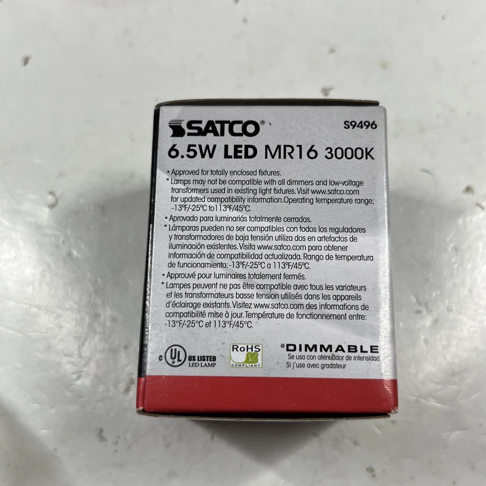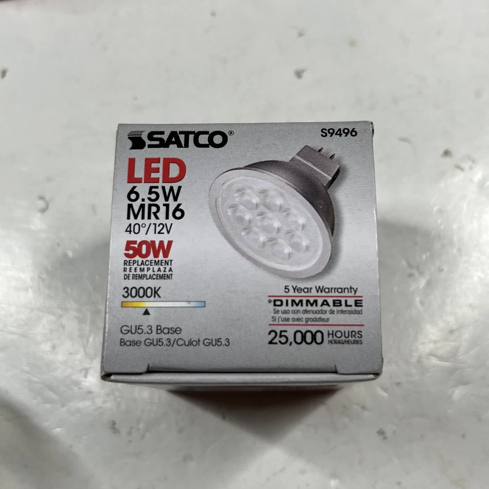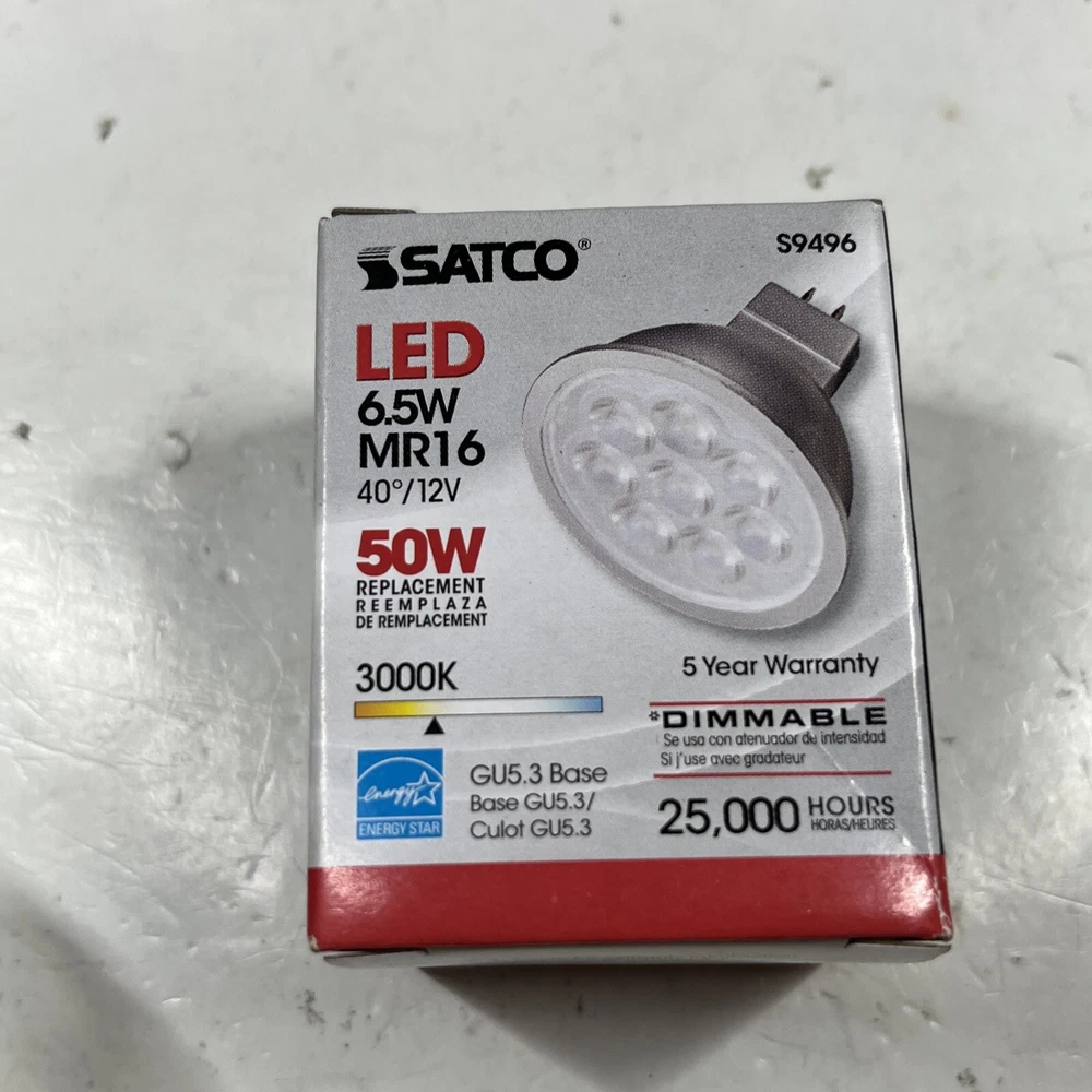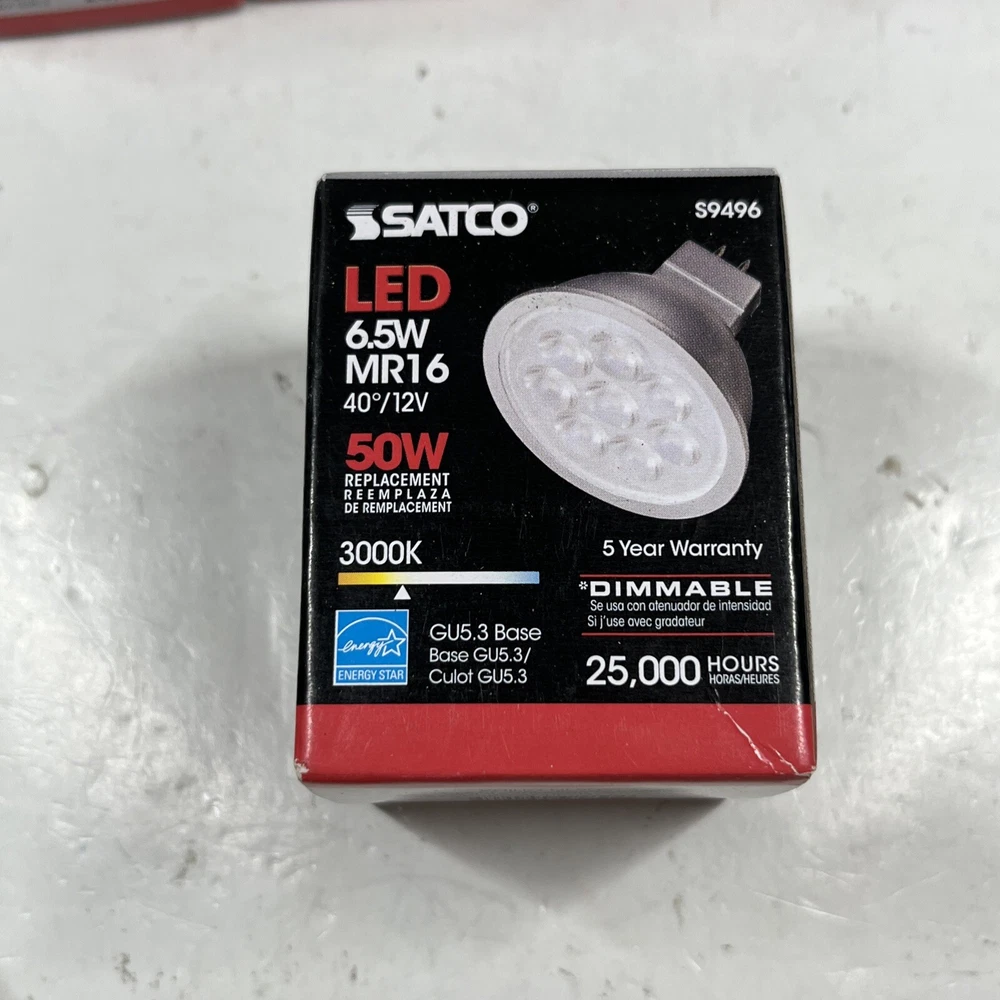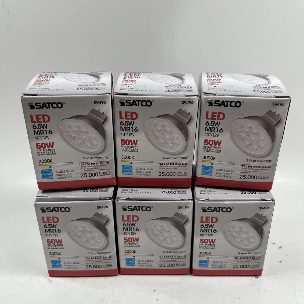 6 Pack Satco S9496 40 Degree Flood FL LED 6.5W =50W 12V MR16 2-Pin GU5.3 3000K All bulbs are brand new in box. Thank you for viewing! We appreciate your business from the bottom of our hearts. We pack and ship all items same or next business day. We ship with USPS Ground Advantage. Always free shipping for all items across our entire store. All of our listings and descriptions are made in the best faith possible to accuracy and honesty of what we are offering. We inspect EVERY SINGLE ITEM to the best of our knowledge and ability before making it available for sale. Why shop with us? We are in the business of your satisfaction here at New Era Deals. You do not need to look any further when it comes to friendly, helpful customer service. Do not hesitate to ask us any questions. If by chance any issue arises with an item, we guarantee we will help find a solution. 30 day returns are accepted for all items available in our store. At the end of the day, we put our customers happiness above all. Please note that while we do offer returns on every item in our store, we have a 0 tolerance policy for fraudulent and unfaithful returns. If you are found to be stealing or abusing our return policy (i.e. returning an empty box or different item from what was purchased) we will 100% reach out to eBay and the local authorities. PLEASE use returns in an honest manner. Our story: We are a small group of eBay sellers with over 20 total years of experience selling on eBay. We collaborated in January 2024 to create project New Era Deals! Selling here on eBay is our pride and passion and lets us express our entrepreneur goals. We are very pleased to bring to our valued customers quality products across endless categories. We appreciate every single one of our past, present, and future customers very deeply!