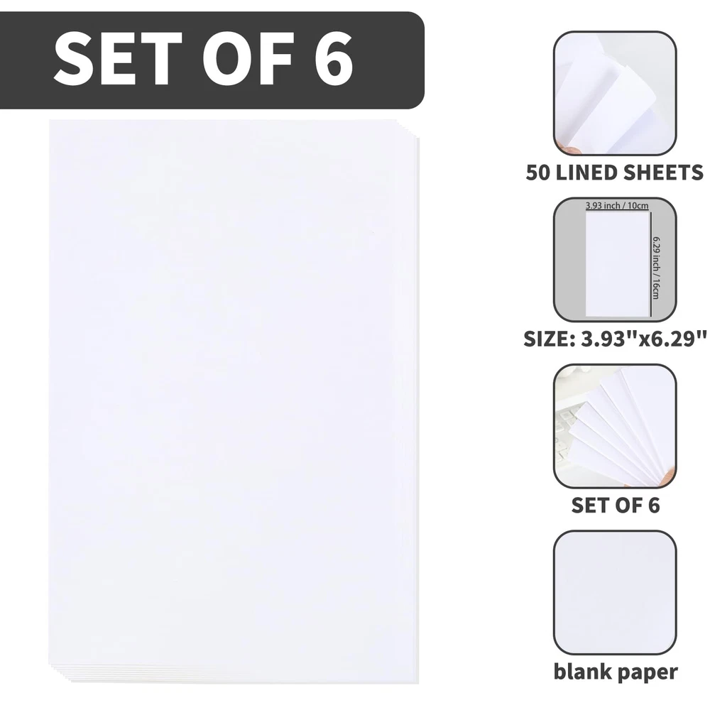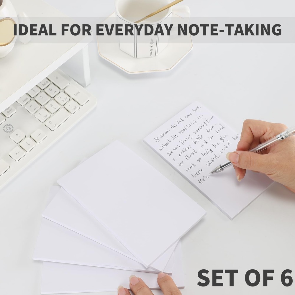 6 Pack Small Memo Pads 4x6 Inch Blank Note Paper 50 Sheets per Pad Writing