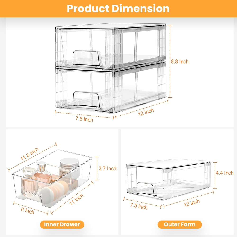 Store New Arrivals Add to Favorite View Feedback Contact 6 Pack Stackable Storage Drawers,Plastic Organizers Bins, Drawers Storage with Handles and Movable Dividers for Organization and Storage in Fridge,Bathroom, Pantry, Kitchen Cabinets, under Sink Description Item model number storagedrawers-clear 2set Item Package Quantity 1 Batteries Required? No Assembly Required Yes Color clear Item Weight 4.18 pounds Material Plastic Assembly Instructions Description No Assembly Required Batteries Included? No Frame Material Plastic Number of Drawers 2 Product Dimensions 7.5"D x 12"W x 7.5"H Size 2 Pack [Removable Organizer Bins]: Each drawer of this storage drawers unit measures [12 inches x 7.5 inches x 4.5 inches]. Each stackable storage drawers comes with removable dividers, allowing you to store not only small items but also longer items by simply removing the dividers. The "one box for one thing" or "one box for one category" storage method makes it easy to achieve [Stackable Design]: This plastic drawer storage is stackable and features a groove on top for easy stacking and securing. The stackable organizer can be used vertically or side-by-side to suit various storage needs. You can put other items on top of the acrylic bins, saving space and making cabinet more tidy. It's an good item for home or refrigerator organizers and storage [Clear & Sturdy]: This clear organizing is made of thick clear plastic, with a transparent, stylish and sturdy design to ensure that the product can be used for a long time. The clear material can clearly display the items, and you can quickly find and take them out. Save your time and take them out easily [Pulling Handle & Non-Slip Design]: The organizer uses a pull-out handle design and an internal track to ensure that the outer frame does not move left and right when the drawer is pulled out, and it is very smooth to pull out and push in.The product includes an extra silicone pad, which is attached to the bottom of the stackable drawers to prevent the storage box from sliding [Suitable Various Scenarios]: This plastic storage drawers is versatile and suitable for various places in the room. It can be used for organization and storage in bathroom countertops, Pantry storage, refrigerator, medicine storage, under the sink, kitchens, closets, cabinets, dressers, coffee bars, offices and other places. You can flexibly apply our storage boxes in different places according to different needs Product description COKIHOM Stackable Fridge Organizers and Storage 1 Pantry Organization 2 Pantry Organization 3 Fridge Organization 4 Undersink Organization 5 Coffee Pod Organization Before & After Comparison, Keeping Everything Organized! 1 Product Data 2 Product Details 3 lnstallation Steps Bathroom Organizers and Storage The video showcases the product in use. The video guides you through product setup. The video compares multiple products. The video shows the product being unpacked. Bathroom Organizers and Storage Merchant Video Pantry Organizers and Storage The video showcases the product in use. The video guides you through product setup. The video compares multiple products. The video shows the product being unpacked. Pantry Organizers and Storage Merchant Video Medicine Cabinet Organizer The video showcases the product in use. The video guides you through product setup. The video compares multiple products. The video shows the product being unpacked. Medicine Cabinet Organizer Merchant Video Refrigerator Organizers and Storage The video showcases the product in use. The video guides you through product setup. The video compares multiple products. The video shows the product being unpacked. Refrigerator Organizers and Storage Merchant Video What material are these drawers made of? These storage drawers are made by PET material. Will the drawer slide when pulled out? Equipped with non-slip pads, it prevents the drawer from shifting when pulled out, ensuring smooth and effortless operation. What can these storage drawers hold? These storage drawers are suitable for various occasions and are ideal for placement in pantry, kitchen refrigerators, or under bathroom sinks. They can be used to store snacks, small skincare products, toothbrushes, and other items. Do the drawers have handles? Yes, these drawer organizers come with handles for easy use. Are the dividers removable? Yes, these drawer organizers have removable dividers. They can store a variety of items, including small items and long, narrow items. ABOUT US We offer the best prices around on high quality products. Our E-store includes media such as books, movies, music and games while offering electronics, toys, sporting apparel, clothing, tools, general home, garden items and more. SHIPPING We are always working hard to ensure your package arrives as soon as possible. Please understand that some factors like weather, high postal traffic, and the performance of shipping companies are outside of our control. We offer free shipping to the lower 48 states and ship within 2 business days of payment, usually sooner. We do not accept P.O. Boxes. Please provide a physical address. For shipping outside of the continental USA, we only use eBay's Global Shipping Program.The item is shipped to KY and then sent to the rest of the world. International customers are responsible for all duties and taxes. Continue to check out in order to calculate costs for shipping the item to your country. Messages regarding eBay's Global Shipping Program MUST be directed at eBay EXCLUSIVELY. RETURNS We offer a 30-Day Return Policy on items which you are not completely satisfied with. You have the option for a full-refund or an exchange of the item. No returns are available on items shipped outside of the USA. PAYMENT We accept PayPal. CONTACT US This page content is yet to come Please ad us to your favorite seller and visit again later Thank You CUSTOMER SATISFACTION We try our very best to make sure every customer is completely satisfied. I