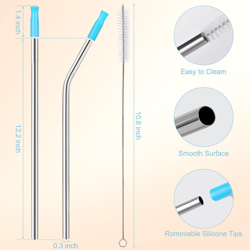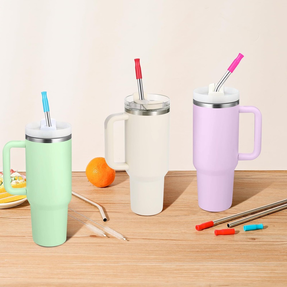 6 Pack Replacement Metal Straw for Stanley 40 30 Oz Tumbler Cups Replacement Straws for Stanley: Include 12 inch long 3 bent and 3 straight straws with silicone tip and 1 cleaning brush.Perfectly compatible with stanley 40 oz 30 oz tumbler cup Food Grade Metal & Silicone: These reusable straws are made of high quality stainless steel and are sturdy,the silicone tips prevents your lips from getting too cold or too hot when you drink, and protects your teeth and lips from scratches Quality:These metal straws are made from top-quality food-grade 304 stainless steel, our replacement straws are the best alternative to plastic straws and help save the planet Easy to Clean: The stainless steel straw includes 1 cleaning brush to help you keep the straw clean and sanitary. You can also easily wash it in the dishwasher Our guarantee :We feel confident that you would love our metal straws,if there's something makes you unsatisfied with, please do not hesitate to contact us