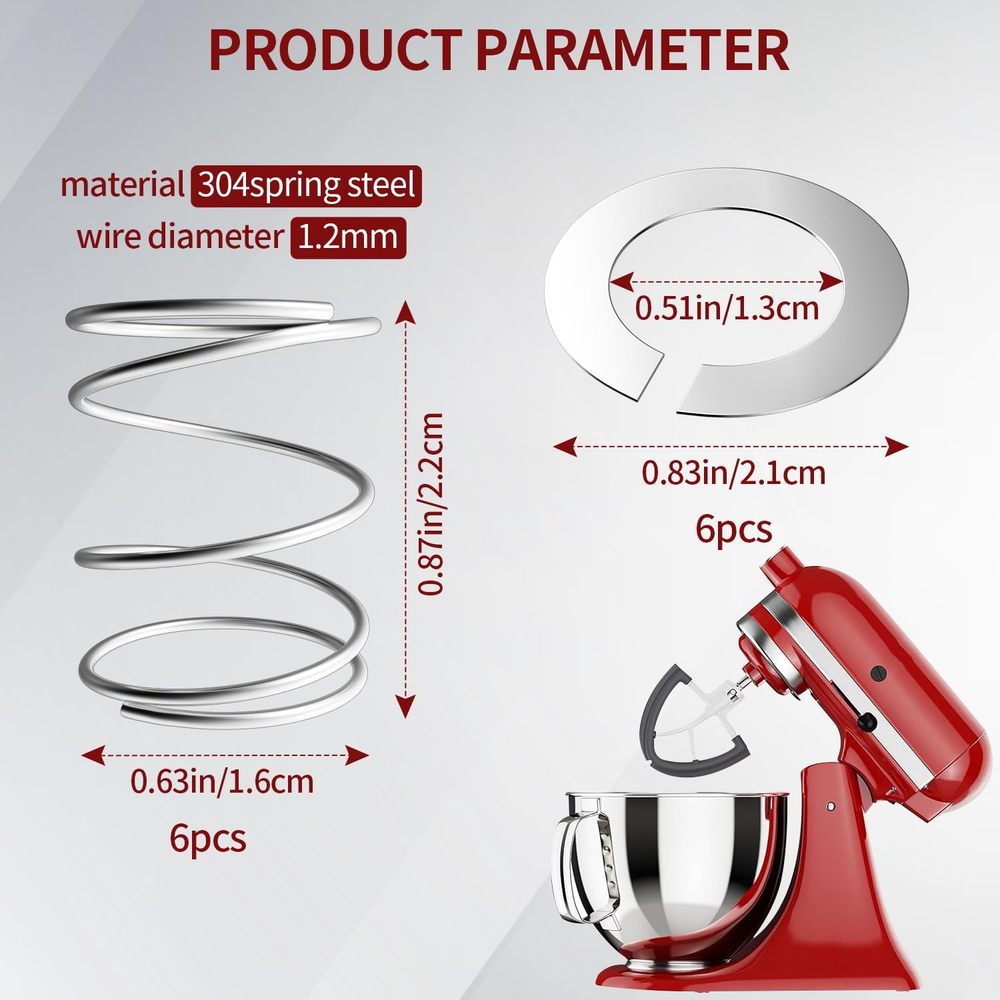 These replacement springs and washers for my KitchenAid mixer were a lifesaver! The stainless steel is smooth and sturdy, with no rough edges. Installation was quick and easy—no special tools needed. Perfect fit, just like the original parts. Great value for a 6-pack! My mixer runs smoothly again. Highly recommend for a quick fix!