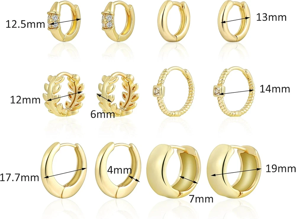 Product Description The video showcases the product in use. The video guides you through product setup. The video compares multiple products. The video shows the product being unpacked. About HILXURY Brand HILXURY is a brand that is focused on the jewelry design and manufacturing, we have a professional design team and factory to make sure product quality strictly. - These small gold hoop earrings are made of brass, zinc alloy, stainless steel post. - 14K gold plated, our gold hoops added extra color e-coating skill to make the color last longer. - All material is nickel-free and lead-free, wear it freely. We hope our customers have a good experience from choosing HILXURY. HILXURY Gold Hoop Earrings for Women The video showcases the product in use. The video guides you through product setup. The video compares multiple products. The video shows the product being unpacked. Trendy Gold Hoop Earrings Set for Women Gold Earrings for Women Trendy gold hoop earrings are with 14K gold plated, which is shiny and thick, and not easy to fade. Gold Hoop Earrings for Women Gold Hoop Earrings are trendy and lightweight, easy to match with other earrings, which will fit perfectly on your ears. Chunky Gold Hoops Set Small Cartilage Piercings Huggie earrings are chic and never outdated, which make you more elegant and charming. Trendy Gold Hoop Earrings Gold huggie earrings are minimalist and practical, which are dainty and look more expensive. Small Gold Hoop Earrings Chunky gold hoop earrings are fashionable, comfortable for everyday wear and suitable for all occasions. Cartilage Piercings Huggie Earrings Small huggie earrings for women/Men/Girls are fancy, AAAAA grade cubic zircon Hoop earrings are ideal gift for Her.