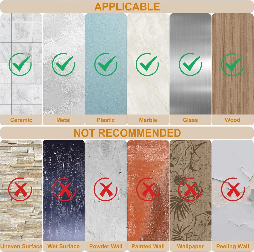 【Adhesive Hooks】This Adhesive hook is designed for easy hanging of items on various surfaces. It uses high-quality adhesive that sticks firmly to walls, doors, glass, and more. 【Heavy-Duty Support】Professionally tested, these hooks are designed to handle heavier items. Made of high-quality stainless steel. No worries about them falling or becoming loose. 【Waterproof and Long-lasting】These hooks feature a waterproof design, making them suitable for use in moist environments like bathrooms and kitchens. They stand up to steam and water droplets, maintaining strong adhesive performance for a long time without damage. 【Easy to Install】Simply peel off the protective layer of the adhesive hook on the back and stick it in the desired position. Recommended to leave it on 24 hours before hanging any objects. 【Wide Applications】You can stick them on smooth hard surface including marble, glass, ceramic tile, plant, metal, wood and PVC. They can be used to hang keys, towels, folders, photos, and more, providing a convenient solution for item storage. Product Description