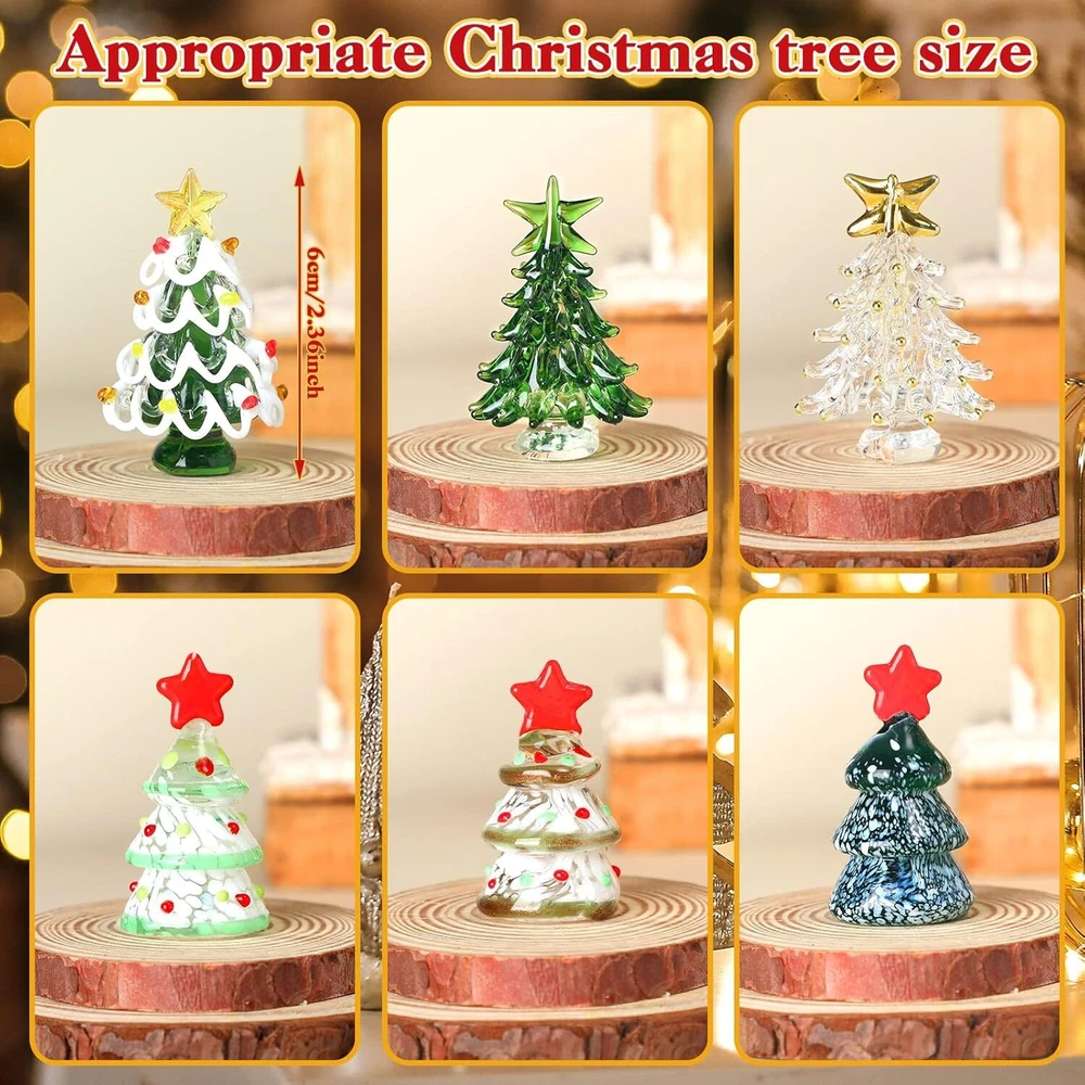 6 Pcs Glass Christmas Tree 2.36 Inch Mini Green Crystal Christmas Trees Figurine Miniature Christmas Trees Figurines Christmas Tree Ornaments for Xmas Party Gifts Home Decor Item Description Ample Quantity: this package includes 6 x glass Christmas trees, allowing you to distribute the joy across multiple rooms; Now your home can sing carols of Christmas from every corner with these twinkling miniature Christmas figurines Glass Material: embrace the holiday spirit with the elegance and durability of our miniature glass Xmas tree; Made from glass, these mini Christmas trees promise longevity and charm, making them the nice addition to your home's festive decor Ideal Size: at approximately 6 cm, these green glass Christmas trees are good for any corner of your home; Whether you place them on your mantel, windowsill, or dining table, they're sure to add a Christmas touch everywhere Adorable Home Decor: cute, tiny, and shaped just like a Christmas tree, these small crystal Christmas trees are the ideal decoration to bring out that holiday feel in your home; They're suitable for all spaces and reliably bring the Christmas vibe Nice Gifts: these glass Christmas trees double up as a wonderful gift idea; Their adorable charm, coupled with the gleaming glass finish, makes them an exquisite set of Christmas gift ornaments for your loved ones Features: Strong and Quality: Don't let their size fool you! These mini glass figurines may be small, but they are incredibly strong, promising many Christmases of sparkling beauty and joyous ambiance. Versatile Features: Our adorable Christmas tree ornaments surpass expectations. Not only do they serve as a charming element to your Christmas decor, but they also act as gorgeous all-year-round decor. Begin a tradition of joy with this green glass set! Specifications: Material: Glass Color: Multicolor Size: 1.42 x 2.44 inches/ 36 x 62 mm (LxW) Package includes: 6 x Glass Christmas Tree Notes: Manual measurement, please allow slight errors on size. The color may exist a slight difference due to different screen displays. Payment Shipping . Return