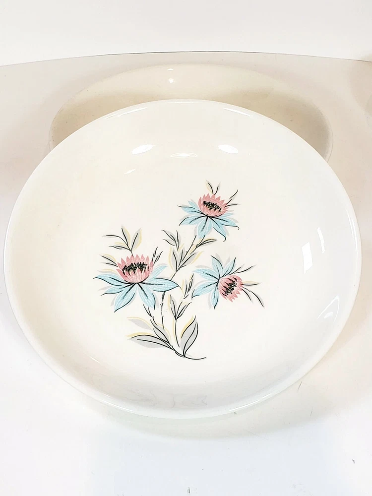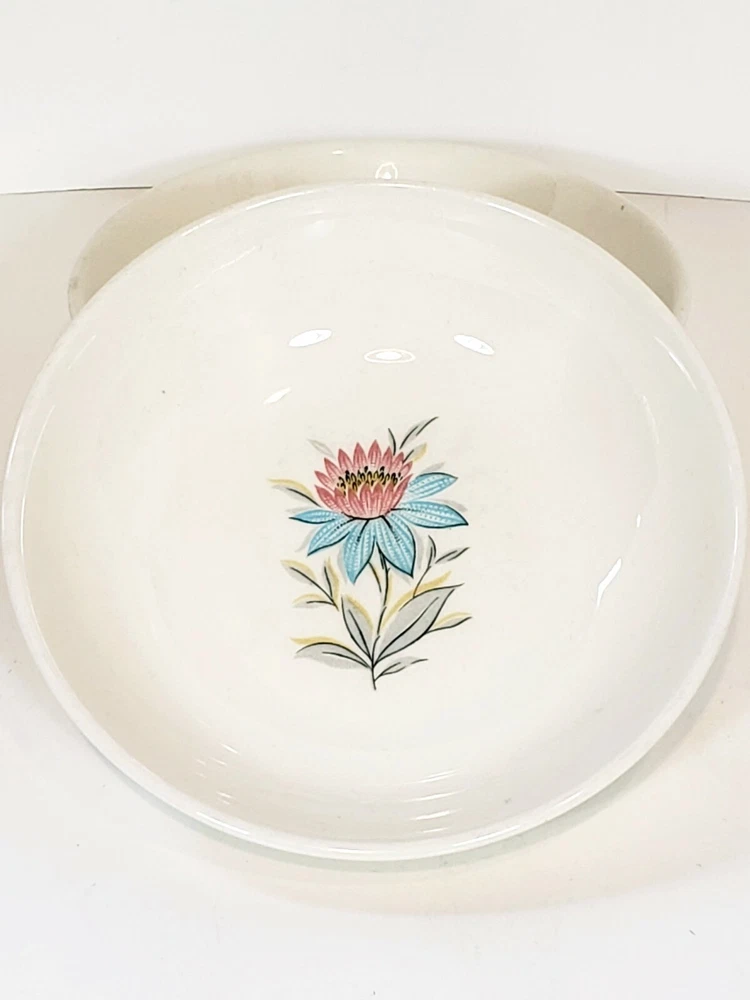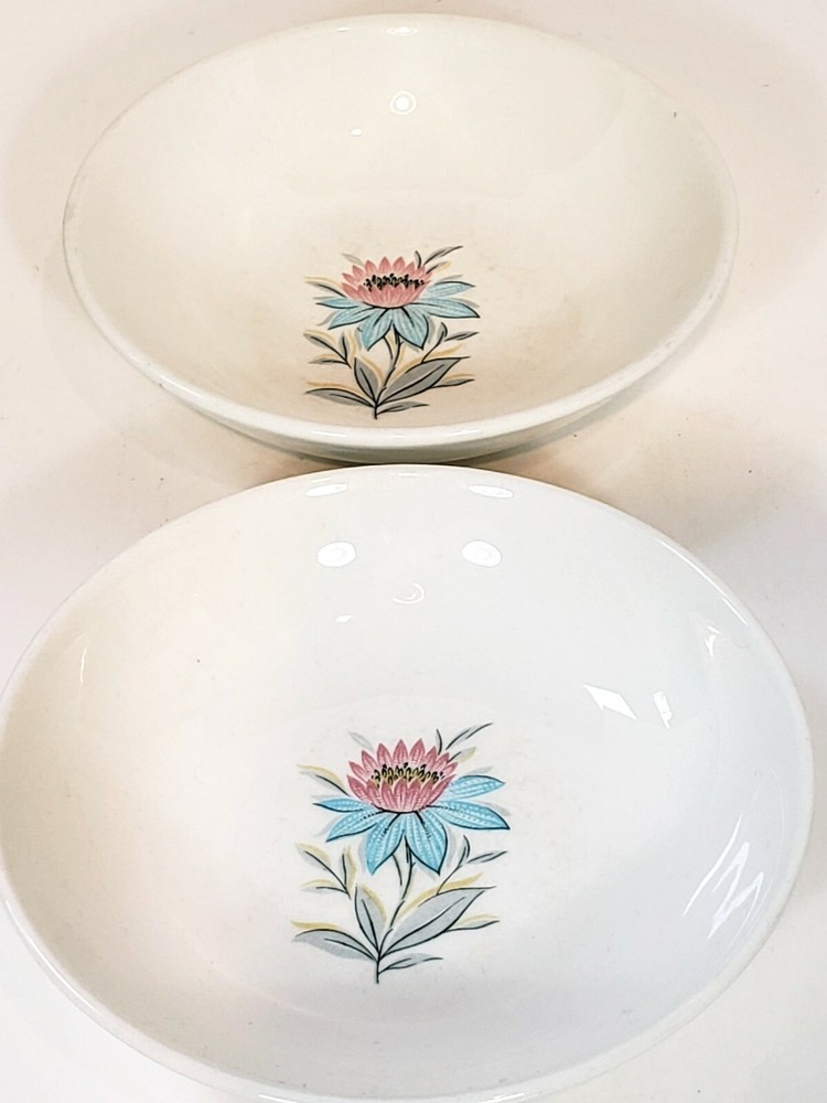 6 Pcs Steubenville Pottery Fairlane Gravy Boat 8" / 6"/ 5 1/4" Bowls. Lot of 6 pieces Gravy boat , two 8" soup bowls or cereal some salad maybe in case you like alot of dressing , two 5 1/4" berry bowls or ketchup for the fries and one 6" bowl for salsa or sour cream and hot sauce for your fries . No chips or cracks o and the gravy boat yep some gravy for your fries.