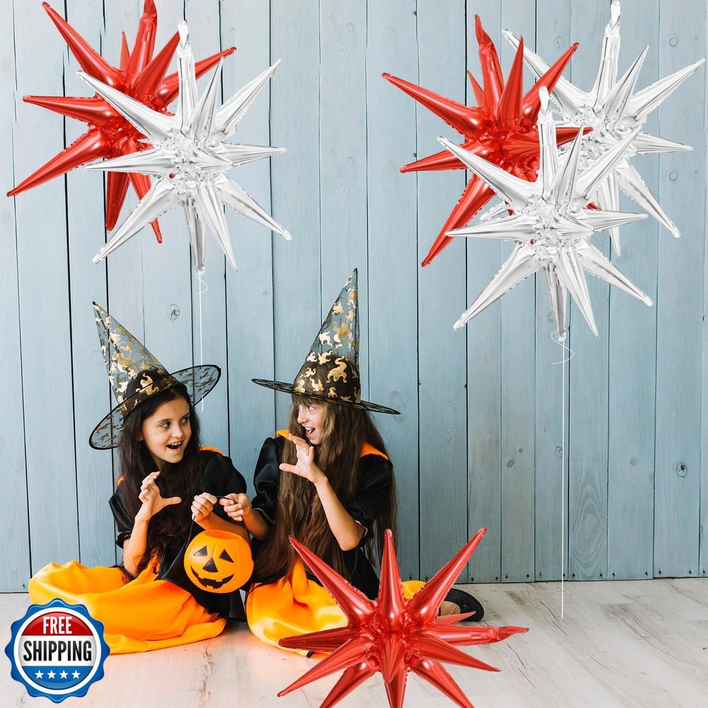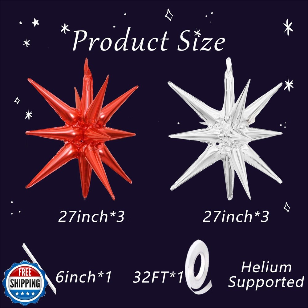 6 Pieces 27 Inches Silver Red Star Explosion Balloons, Large 14-Pointed One-Piece Cone Stars Fireworks Aluminum Foil Balloons for Halloween Birthday Graduation New Year Backdrop Party Decorations Features PACK OF 6 | STAR EXPLOSION BALLOONS SET: This set includes six uniquely designed star explosion foil balloons in silver and red. Perfect for adding a striking touch to your Halloween, birthday, graduation, and New Year party decorations. HIGH-QUALITY ALUMINUM FOIL MATERIAL: Constructed from high-quality aluminum foil, these balloons maintain their shape and stay inflated throughout your event. The set includes large 27-inch 14-pointed star balloons, offering a dramatic visual display for your party decorations. HELIUM SUPPORTED | EASY TO SETUP: These balloons can be filled with helium to float or air for display. Inflation is simple with a straw or pump, and each balloon features a self-sealing valve for easy setup and no hassle of tying. VIBRANT AND FESTIVE DESIGNS: The bold silver and red colors and striking 14-pointed star shapes perfectly capture the spirit of the celebration. They make an excellent addition to any party, enhancing the festive atmosphere with their eye-catching designs. IDEAL FOR VARIOUS EVENTS: Designed to be standout decorations at Halloween, birthday, graduation, and New Year parties, these balloons are excellent for setting the mood at home gatherings, community events, and other festive celebrations. Their impressive presence ensures that your celebration becomes a memorable event. Shipping Free & Fast Shipping: We offer free shipping to most of the USA with a normal delivery time of 3-7 days. However, due to the current situation, additional delivery time (up to 3 weeks) may be required for some items. Alternative Carriers: We may use alternative carriers (e.g., USPS, FedEx, UPS) to ensure your package arrives safely and on time. Due to the use of multiple carriers, we are unable to provide a tracking number automatically. Handling Time: Orders are processed and shipped within 1-2 business days of receiving cleared payment. Shipping Restrictions: Shipping to Alaska, Hawaii, Puerto Rico, Guam, and other US territories may incur shipping charges or delivery restrictions. Please contact us before ordering, or your order can be refunded/cancelled. State Restrictions: Certain items may not be shipped to California due to state regulations. Contact for Tracking Updates: If you require tracking updates or have any concerns about the delivery of your order, please feel free to contact us, and we will be happy to assist you. Return Policy 30-Day Hassle-Free Returns: If you are not completely satisfied with your purchase, you can return the item for free within 30 days of receiving it for a full refund or exchange. Easy Return Process: Contact us, and we will provide you with a prepaid return shipping label and detailed instructions. No Restocking Fee: There are no restocking fees for returns. However, the buyer is responsible for return shipping costs if the return is not due to a seller"s error. Refund Processing: Refunds will be processed within 1 business day of receiving the returned item in its original condition. Feedback Your feedback is extremely important to us. We strive to provide the best products and customer service possible. If you are satisfied with your purchase, please take a moment to leave us a positive review. If you have any concerns or issues with your order, please contact us before leaving negative feedback. We are committed to resolving any problems and ensuring your satisfaction. Contact Us If you have any questions or concerns, please feel free to reach out to our customer support team. You can contact us through the eBay messaging system. We are available Monday to Friday, 9:00 am to 5:00 pm EST, and we will do our best to respond to your inquiry within 24 hours. Thank you for supporting our small family business!