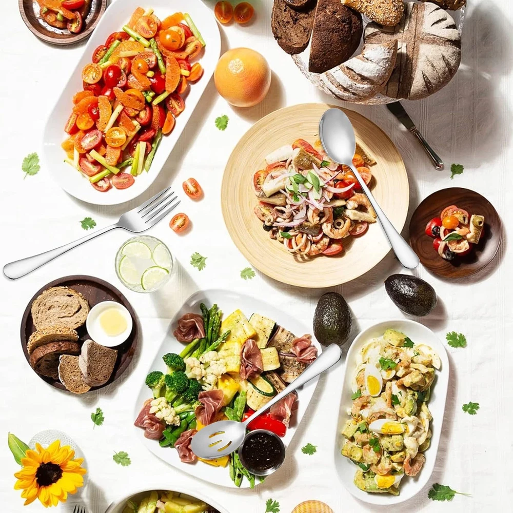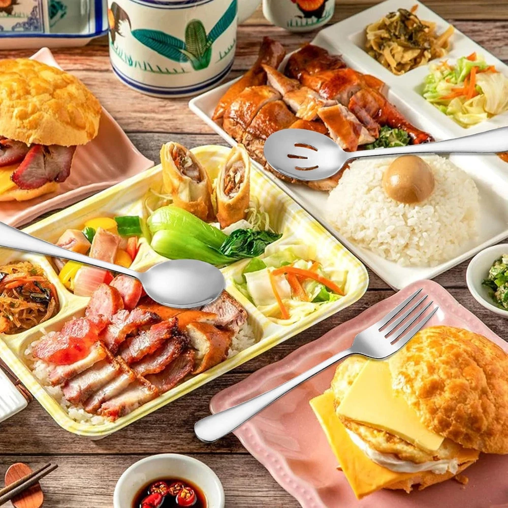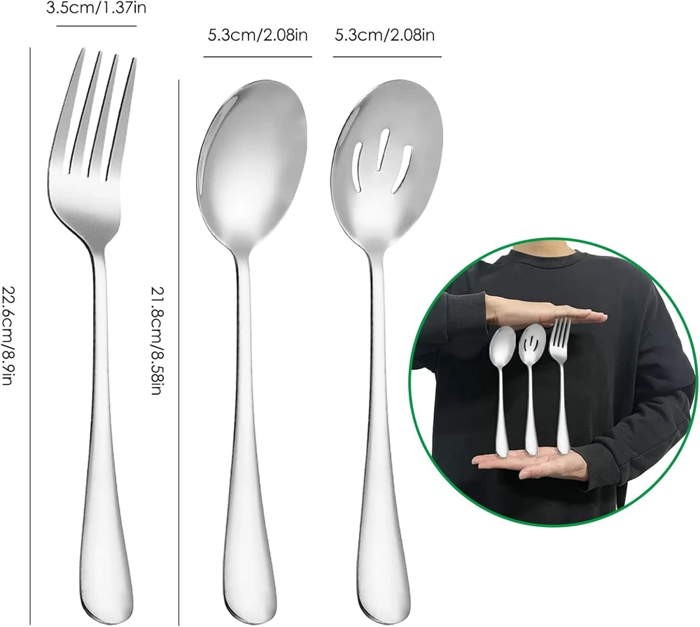 Store New Arrivals Add to Favorite View Feedback Contact 6 Pieces Large Serving Flatware Silverware Set, 2 Slotted Serving Spoon, 2 Serving Spoon and 2 Serving Fork for Party Buffet Dinner Banquet (Silver) Description Item Weight 349 Grams Style Modern Color Silver Special Feature Rust Resistant Material Stainless Steel Is Dishwasher Safe Yes Is Stain Resistant Yes Number of Pieces 6 Finish Type Polished Package Dimensions 8.67 x 6.42 x 1.58 inches Product Care Instructions Dishwasher Safe QUALITY- Made of high quality stainless steel which ensures your health, Rust-resistant, sturdy and durable for years to come. Dishwasher-safe, heavy duty and durable. GREAT POLISHED- Clean and classy looking, smooth surface and mirror polish makes these forks always keep shining, perfectly match your current silverware set and tableware. SIZE- Slotted Serving spoon and serving spoon is 21.8cm/8.6 inches in length , serving fork is 22.6cm/8.9inches in in length with proper thickness and nice weight, long handles for comfortable holding. PRACTICAL FUNCTION- Suitable for all your parties, events and buffets, and they works well on catering, barbecue, wedding, celebration, banquet, holiday meal, potluck, home, restaurant, hotel, etc. SET OF 6- 2 pieces medium serving spoons, 2 pieces slotted serving spoons and 2 pieces serving forks, heavy duty catering serving utensils will meet all food service needs. If you are not satisfied with the product or there is any issue with the product, please contact with us and we will solve it for you. Specifications Color: Silver Material: Stainless steel with a high polish finish Simple Design: Easily matches existing flatware in your kitchen Dishwasher safe: Sturdy and durable Size: Forks in length: 22.6 cm/ 8.9 inches Solid spoons in length: 21.58 cm/ 8.58 inches Slotted spoons in length: 21.58 cm/ 8.58 inches Package includes: 2 x Serving forks 2 x Serving solid spoons 2 x Serving slotted spoons ABOUT US We offer the best prices around on high quality products. Our E-store includes media such as books, movies, music and games while offering electronics, toys, sporting apparel, clothing, tools, general home, garden items and more. SHIPPING We are always working hard to ensure your package arrives as soon as possible. Please understand that some factors like weather, high postal traffic, and the performance of shipping companies are outside of our control. We offer free shipping to the lower 48 states and ship within 2 business days of payment, usually sooner. We do not accept P.O. Boxes. Please provide a physical address. For shipping outside of the continental USA, we only use eBay's Global Shipping Program.The item is shipped to KY and then sent to the rest of the world. International customers are responsible for all duties and taxes. Continue to check out in order to calculate costs for shipping the item to your country. Messages regarding eBay's Global Shipping Program MUST be directed at eBay EXCLUSIVELY. RETURNS We offer a 30-Day Return Policy on items which you are not completely satisfied with. You have the option for a full-refund or an exchange of the item. No returns are available on items shipped outside of the USA. PAYMENT We accept PayPal. CONTACT US This page content is yet to come Please ad us to your favorite seller and visit again later Thank You CUSTOMER SATISFACTION We try our very best to make sure every customer is completely satisfied. If there's a problem, message us! We're happy to help. WE ACCEPT Copyright © 2021 AutoDS. | All Rights Reserved