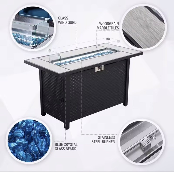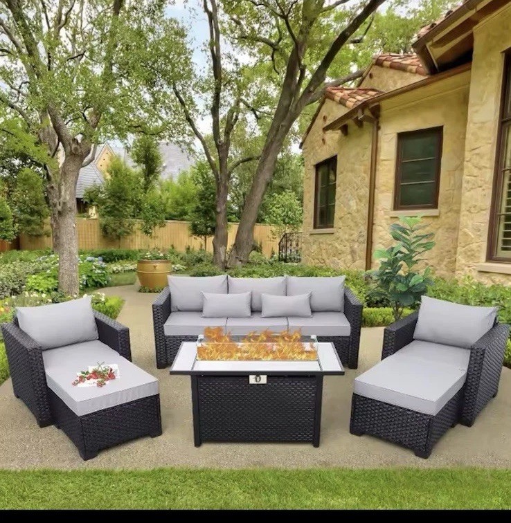 6 Pieces Outdoor Patio Furniture Propane Fire Pit Table Waterproof Anti-slip
