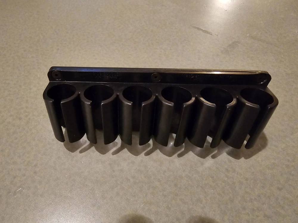 This has been lightly used and in very good condition. Holds 6 shells and very easy to install. WHAT YOU SEE IS WHAT YOU GET.
