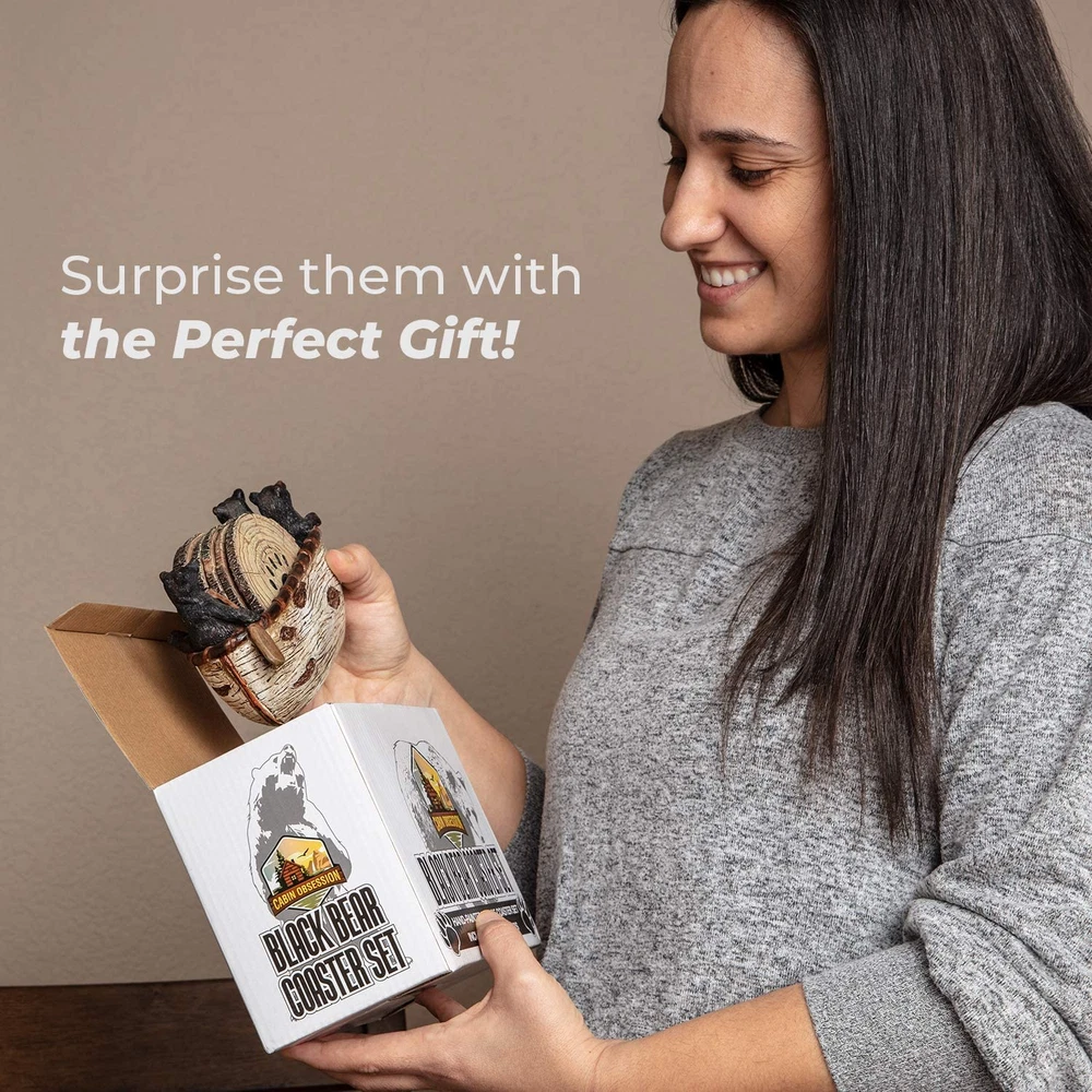 Set of 6 Full Size Rustic Coasters in Handmade Canoe with Adorable Black Bear Figurines | Black Bear Log Cabin Decorations, Rustic Lodge Decor for The Home 🐻 Beautifully Handcrafted Bear Coaster Set – 100% crafted and painted by hand, each piece is unique and made with love. This set will enhance your home with functional rustic cabin decor that brings a smile to your face. 🐻 Not Four... but SIX Full-Size Coasters – Other bear coaster sets come with 4 coasters, but ours includes 6 coasters so you can entertain even more guests. Ours are also larger than most others, with a 3.5-inch diameter (instead of 2.75-inch) in order to accommodate larger cups and mugs. 🐻 Makes the Perfect Gift – Our adorable bear coaster set makes the perfect housewarming gift for cabin decorations, rustic home decor, farmhouse decor, or simply as a unique coffee table feature for a man cave. Not to mention, the adorable canoeing bear characters make a great conversation piece! 🐻 Our Coasters are Different – Our coasters are fully handcrafted solid resin, so you won’t have any problems with poorly-absorbing cork or warping over time. We offer 6 coasters instead of 4, and ours are full-size 3.5 inches diameter (instead of 2.75) to fit any glass or mug. 🐻 1-Year No-Risk Guarantee, & World Class Customer Service – Purchase with confidence! We’re absolutely confident you’re going to love your new coaster set, but if you’re not happy for any reason, just contact us and we’ll quickly make it right, or refund your money. That’s a promise. 24 hour response guaranteed. Product Description Beautifully Handcrafted Bear Coaster Set 100% crafted and painted by hand, each piece is unique and made with love. This set will enhance your home with functional rustic cabin decor that brings a smile to your face. Makes the Perfect Gift Our adorable bear coaster set makes the perfect unique and rustic gift. Not to mention, the adorable canoeing bear characters make a great conversation piece! Not Four... but SIX Full-Size Coasters Other bear coaster sets come with 4 coasters, but ours includes 6 coasters so you can entertain even more guests. Larger Coasters that Won't Warp Ours full-size coasters are significantly larger than others, (3.5 inches instead of 2.75) to fit any glass or mug. And unlike poorly-absorbing cork that warps over time, ours are made from solid resin. Diameter 3.5 Inches Style Bear Coaster Number of Items 6 Assembly required No Color Brown Gray Material Vinyl, Pewter, Resin, Glass, Metal Is Dishwasher Safe No Item Weight 1.96 pounds Batteries required No Shape Round Product Dimensions 3.5"L x 3.5"W Product Care Instructions Hand Wash Only 3.5 "w x 3.5 "w. Weight: 1.96 lb Shipping from the USA All of our products are shipped from the USA, ensuring quick delivery to your destination. Payment We offer the following payment methods: PayPal, credit card, bank transfer, and eBay's secure payment system. Free Shipping & Free Returns Shipping within the USA is FREE. Additionally, any return is absolutely free for you. Risk-Free Purchase You have the option to return an item within 30 days without any justification. We cover the return shipping costs! Fast Shipping We ship immediately upon receipt of payment. Generally, the package is delivered within 2-3 days in the USA. If it takes longer, we will contact you. Quality and Costs Made in Europe, USA, China No customs fees or additional charges Total satisfaction guarantee Invoice with declared VAT available upon request in .pdf format Feedback Your feedback is very important to us. After you pay for your purchase, you will automatically receive positive feedback from us.