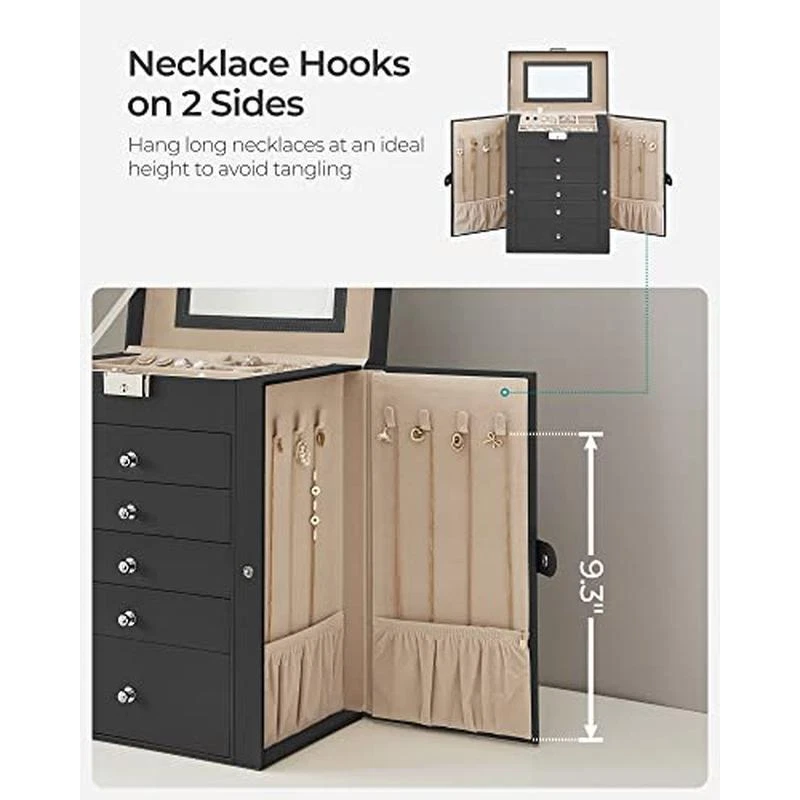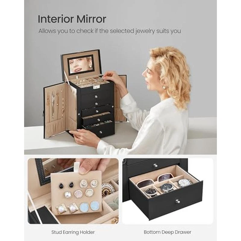 You may also like Devils Claw Plus Powder Joint Supplement Horses 5lb Antioxidants Mobility New 90.86 USD 95.64 USD Free shipping 5% off Adjustable Pedestal Fan W/ Remote Timer Oscillation Bedroom Living Room New 38.93 USD 40.98 USD Free shipping 5% off Foam Toolbox Liner Drawer Mat No Slip Soundproof Shock Absorbing 24 Ft Long New 48.63 USD 51.19 USD Free shipping 5% off Duramectin Wormer Horses 18Pack Paste 1.87%. Each 0.21-Oz Tube One 1250-lb Horse 194.76 USD 205.01 USD Free shipping 5% off Storage Cabinet 3 Doors Organizational Furniture Home Office Living Room Black 72.05 USD 75.84 USD Free shipping 5% off Sturdy Modern Computer Workstation Easy Assembly Steel Frame Office Desk New 85.69 USD 122.18 USD Free shipping 30% off 8-Pack WPC Acoustic Slat Panels Easy Install Soundproof Wall Decor Interiors New 234.64 USD 246.99 USD Free shipping 5% off Double Sided 4x6 in Picture Frames Bulk Tabletop Display Photo Holders 20 Pack 42.47 USD 44.71 USD Free shipping 5% off Compact Electric Circular Saw 4.5 Inch Depth Gauge Lightweight Powerful Tool New 100.54 USD 105.83 USD Free shipping 5% off Direct Drive Bench Belt Sander 4x36 Disc Sander 3/4HP Woodworking Tool 120V New 218.41 USD Free shipping Portable Adjustable Miter Saw Stand Gravity Rise System 18ft Capacity Wheels New 406.51 USD Free shipping 5-10 Gallon Aquarium Stand Metal Storage W/Plant Shelf Adjustable Feet Fish Tank 82.12 USD 86.44 USD Free shipping 5% off About this item [6 Tiers, Spacious] This 6-tier jewelry box boasts multiple layers with different compartments and layouts to keep all your jewelry, like stud earrings and rings, sorted and organized; the deep bottom drawer fits 3 watches and a pair of sunglasses [4 Rows of Necklace Hooks] This jewelry case comes with 4 rows of hooks that feature an ideal height so all your necklaces, even the longer ones, can hang up here perfectly without getting tangled [With Inner Mirror and Lock] The jewelry organizer has a mirror inside that allows you to do your makeup and check your look easily, saving precious morning time; it has a lock with 2 keys to keep your valuables away from naughty kids [Crafted to Last] Thanks to select PU, sturdy MDF, soft velvet lining, and neat stitching, this lockable jewelry case stands out for its quality and durability—it’ll keep you company for many years to come [Fancy Gift Idea] Gift this well-crafted, stylish jewelry holder with mirror to loved ones for their birthday or anniversary to surprise them! Or, treat yourself to this charming jewelry box—you deserve it! › product details Color Black Brand SONGMICS Material PU (Polyurethane), MDF (Medium Density Fiberboard), Velvet Style Elegant Special Feature Jewelry Organizer,Sturdy Recommended Uses For Product Jewelry, Watches Product Dimensions 6. 1"D x 10. 2"W x 12. 6"H See more You may also like Indoor 12AWG NMB Cable 100ft SIMpull Copper Wire Residential Electrical Wiring 95.01 USD Free shipping Portable Propane Water Heater Shower Pump Compact Camping Cleaning System New 282.14 USD Free shipping 30 Piece Hex Torx P-Handle Driver Set Gunsmithing Maintenance Tool Kit Steel New 59.35 USD Free shipping Table Saw Precision Adjustable Blade Extendable Low Noise Motor Model Building 375.76 USD 395.54 USD Free shipping 5% off 10/2 NMB Cable 50 ft Indoor SIMpull Copper Wire Electrical Installation Orange 95.07 USD Free shipping Portable Folding Workbench W/ 12 Inch Clamps DIY Projects Heavy DutyUse Garage 130.03 USD Free shipping Portable Propane Powered Water Heater Shower Pump Outdoor Camping System Black 365.74 USD Free shipping Deluxe Heavy Duty Steel Hunting Blind 360 View 3-Person Shooting Windows Outdoor 223.35 USD 235.11 USD Free shipping 5% off High Performance Game Feeder Digital Timer 225 lb Capacity Tripod Hunting New 121.03 USD Free shipping 15ft Trampoline Basketball Hoop Accessory Easy Setup 2 Foam Balls Safe Design US 72.37 USD 76.18 USD Free shipping 5% off Feeder Kit Digital Timer Quick-Lock Varmint Guard Hunting Tool 360 Coverage New 53.27 USD Free shipping Plastic Tool Box W/ Drawers Stackable Organizer Heavy-Duty Storage System New 41.62 USD 43.81 USD Free shipping 5% off