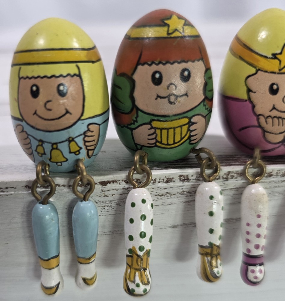 (6) Vintage Christmas Hand Crafted/Painted Wooden Egg Shelf Sitters Set. Condition is Used. Shipped with USPS Ground Advantage.