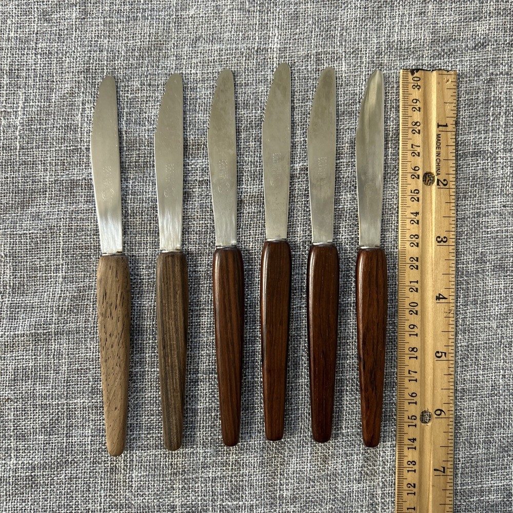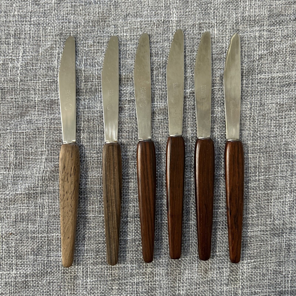 Set of 6 - Vintage - Rostfrei Solingen Germany Knives - Stainless Steel w Wood Handles & Block Pre-Owned - Please see Pictures for Details