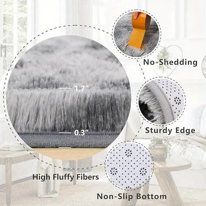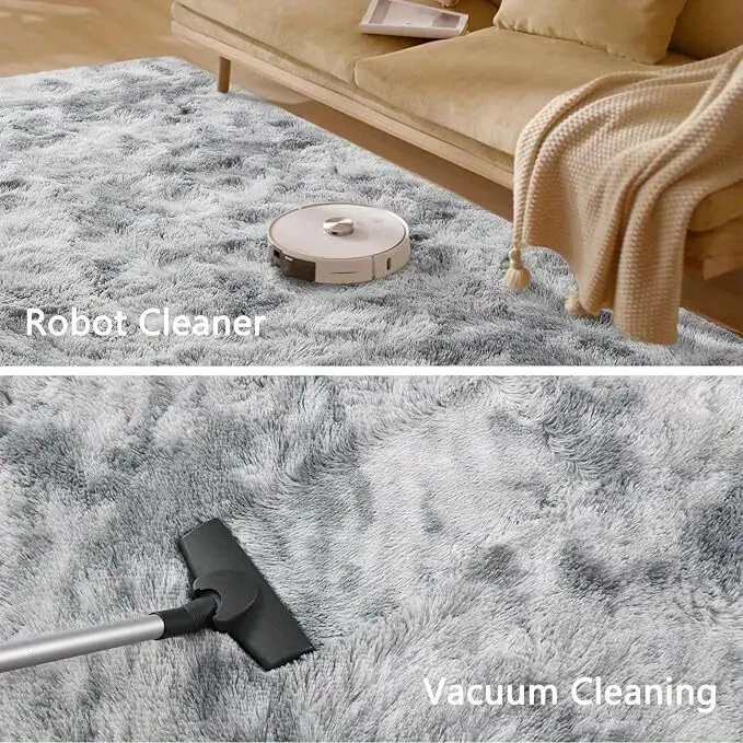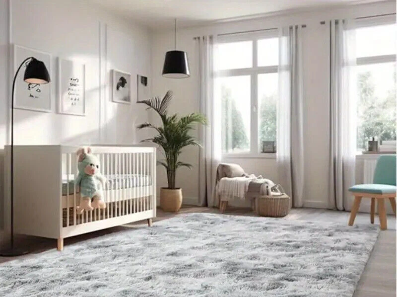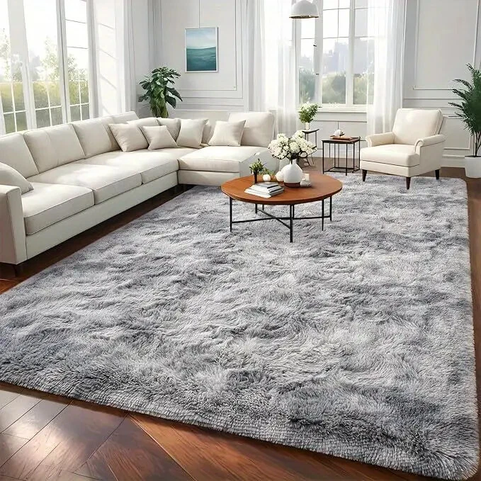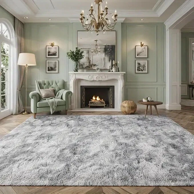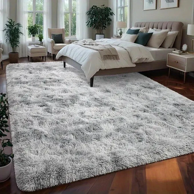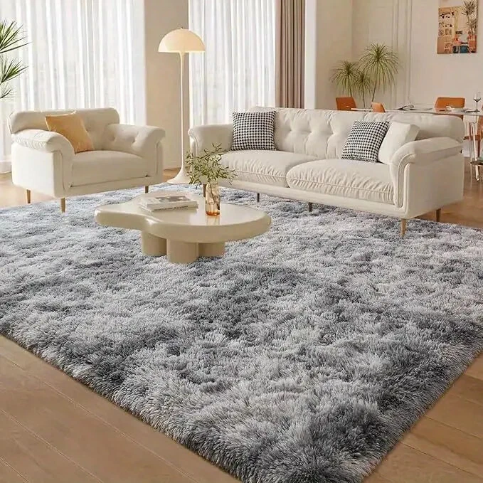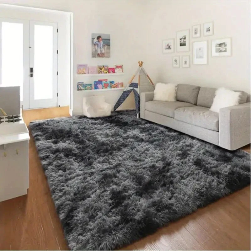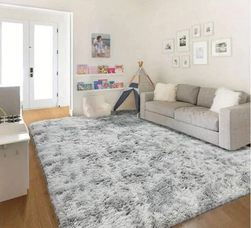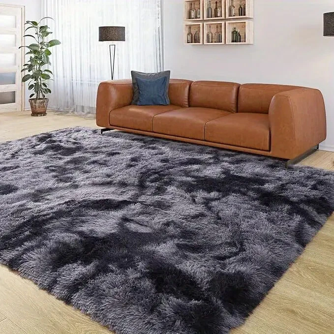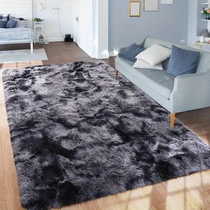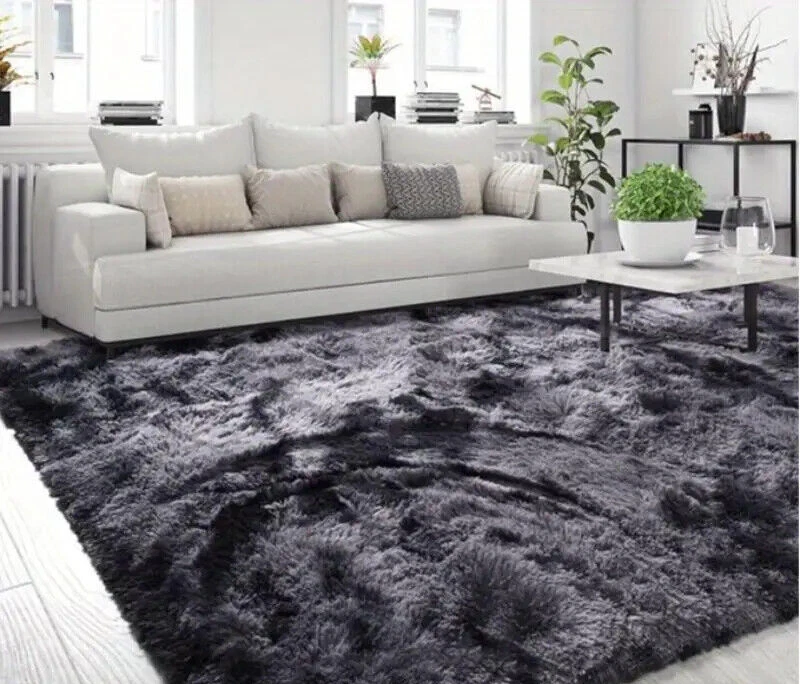 Add a touch of modern elegance to your living space with this 6' x 9' ft Soft Shag Area Rug. The rectangular rug features a tie-dye pattern in a range of colors to choose from. Made from faux fur material, this rug is not only stylish but also flame-resistant and anti-slip. The rubber backing ensures that the rug stays in place, while the high pile height adds a cozy and comfortable feel to any room. With easy care instructions and dry clean only, this rug is perfect for any room in your home, including the living room, bedroom, home office/study, lounge, guestroom, hallway, nursery, and dining room.