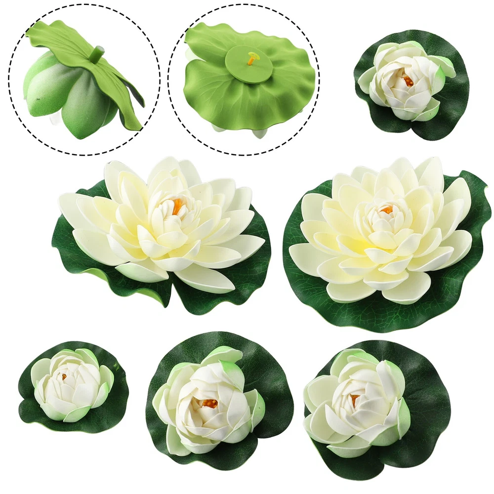 6 X Floating Plants Water Lily Artificial Lotus Flower Leaf Pond Garden/ Decor DESCRIPTION Description The water lilies is designed to float on ponds or swimming pools. Leaves are deep green with embossed shape and veining detail. Flowers are white with the underneath of the bottom layer of petals in a pale green and is a very subtle shade of pale green tint throughout the lily flower. Features: * brand new and high quality *Made of soft, flexible plastic, suitable for both outdoor and indoor usage. *Let them float freely, or use the small ring on the bottom of each float to anchor them using string (string not included). *Compared with real plants, it is more practical and convenient for use. *These floating stimulation flowers can be singly put into a pond with other water plants to create a stunning effect. Perfect for home, garden, patio decor. Specifications: *Color: White. *Material: Plastic. *2pcs Large flower diam.: About 18cm. *4pcs Small flower diam.: About 10cm. Package Contents: 6 x Artificial Plant Note: 1, The real color of the item may be slightly different from the pictures shown on website caused by many factors such as brightness of your monitor and light brightness. 2, Please allow slight manual measurement deviation for the data. POLICES Shipping Payment WARRANTY We only ship to confirmed ebay Order addresses. Please comfirm that your Order address is in line with your shipping address. Please kindly note that the c ombined shipping is not provided because the shipping fee is calculated by weight. Also, the each additional item means exactly the the same color and size. It takes about 7 -15 working days to US; about 10-30 working days to other countries. Transit time may be a little delayed because of the bad weather and customs inspection . If you do not receive your item within 30 working days since payment finished, please contact us immediately for further assistance. Payment must be completed within 5 days. If you have any problems about payment, please contact us via ebay message. We strive for 100% customer satisfaction! Positive Feedback is very important to us. If you have any questions, p lease feel free to contact us via "Ask seller a question" . We will reply your email within 24 working hours. On Jan 2, 2025 at 07:32:18 PST, seller added the following information: