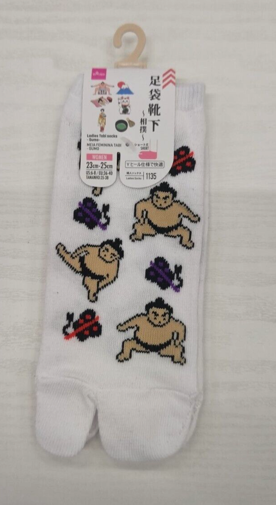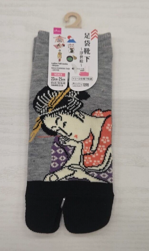 Item Title Description This is a set of 6 Japanese Tabi Socks designed for women. The socks feature various traditional Japanese designs such as Ukiyoe, Tsuru, Neko, Sushi, and Sumo. They are unused and made of polyester and polyurethane materials. The socks are designed in a Tabi style, which includes a separation between the big toe and the rest of the toes for wearing with traditional Japanese footwear. Please check the condition in the photo and purchase only if you agree with the condition. Please feel free to contact us if you have any question. Shipping Your valuable items will be shipped via Japan Post EMS and a tracking number will be provided. We will pack and ship your valuable items with the utmost care. International Buyers - Please Note: Import duties and taxes are not included in the item price or shipping cost. Please check with your country?s customs office to determine these additional costs prior to bidding or buying. Additionally, if the delivery address is in a remote area, there may be additional charges by FedEx or DHL. If such charges occur, you may be asked to pay an additional $15 to $20.