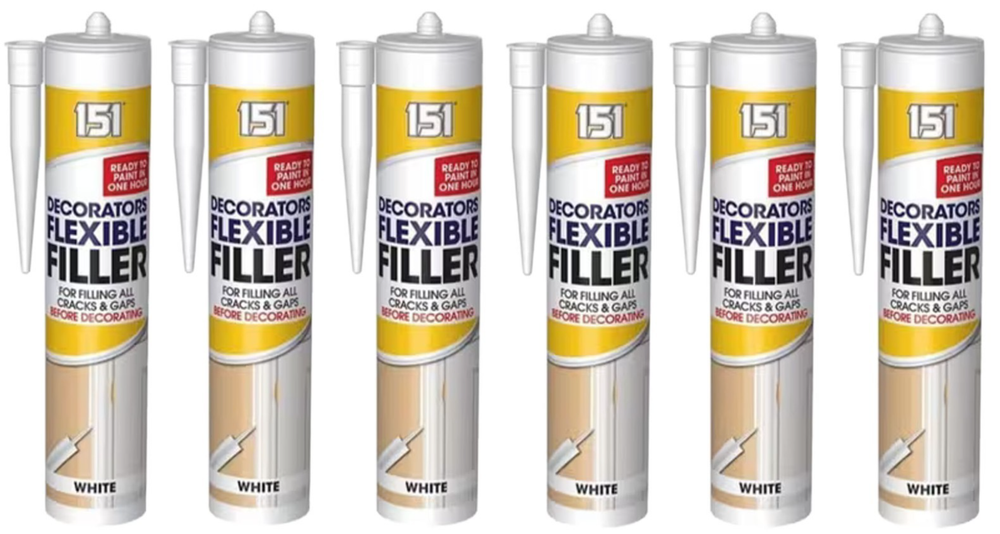 6 x WHITE DECORATORS FLEXIBLE FILLER 280ML FOR FILLING ACRYLIC CRACKS & GAPS NEW