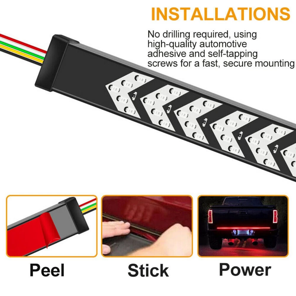 Product Description 60" 540 LED Truck Strip Tailgate Bar Brake Turn Signal Red/Yellow Light Bar Features: Full Functions: The arrow-style tailgate light features full functions of the brake. Universal Fitment for: Tailgate light with a working voltage of 12V DC, fits most vehicles. Specifications: Housing material: Fully Sealed Silicone Housing Shell material: PVC Voltage: DC 12V Light Source Power: 5W Current: 0.5A Luminous Flux: 500LM LED Quantity: 540 LEDs (270 Red+270 Yellow) LED Type: 2835 Light Color: Red/Yellow Red Light For: Driving Light, Brake Light (Will Not override Turn signal) Yellow Light For: Turn Signal Light (Will override brake light) Brake Light: Quick flash 3 times and stay on. (Red color) Waterproof Rate: IP68 Light Length: 60inch / approx. 150cm Package Included: 1 x 60"inch Truck Tailgate LED Light Strip If you have any questions, please feel free to contact us via ebay. We usually respond within 24 hours. Payment Shipping Returns Contact Us We accept all verified payments from ebay. Orders will be shipped after receiving cleared payment. Payment due within 7 days after auction ends and for buy it now listings. We ship most of our orders within 24 hours, and may up to 48 hours for. If you want faster shipping way. Please contact us before making payment. Sometimes due to problems with our transportation company system, your shipping information may be delayed to update. We recommend that you try again after 3-4 days. If you still haven't checked the shipping information, you can contact us by ebay message. Always believe we can figure things out with communication, if it comes to return, the pacakge must be intact and the same as you receive. If you have any questions, please feel free to email our service specialists 24 Hours a Day, 7 Days a Week. We will reply you ASAP. Return/refund is accepted within 30 days after the buyer receives the item. NO exchange will be accepted after 30 days from the date when the item is received. Please contact us first before returning your product!!! If you have any questions, our Customer Service staffs welcome you to email us. We strive to answer all questions and resolve any problems as quickly as possible. You can contact us 7*24, we will reply at the first time, and we will surely solve your problems. Note: 1.We try our best to reply to your emails as soon as possible, however, due to high volume of daily incoming emails and time zone difference, we may not be able to reply your emails immediately. Please allow 1 business days for us to response. If you do not receive any reply from us, please check your email ensuring your mailbox has not reached full size. 2.Due to some ISP SPAM filter settings, you may not be able to receive our replies; if you have problems receiving our emails, you may need to use a different email account to contact us. 3.Please give us the opportunity to resolve any problem. We understand the concerns and frustrations you might have, and will try our best to resolve the issues. Please email us before leaving any negative feedback or open any dispute on PayPal. 4.We care about our valued customers, and will always try to help you. So if you have any problems, please e-mail us immediately. Payment We accept all verified payments from ebay. Orders will be shipped after receiving cleared payment. Payment due within 7 days after auction ends and for buy it now listings. Shipping We ship most of our orders within 24 hours, and may up to 48 hours for. If you want faster shipping way. Please contact us before making payment. Sometimes due to problems with our transportation company system, your shipping information may be delayed to update. We recommend that you try again after 3-4 days. If you still haven't checked the shipping information, you can contact us by ebay message. Returns Always believe we can figure things out with communication, if it comes to return, the pacakge must be intact and the same as you receive. If you have any questions, please feel free to email our service specialists 24 Hours a Day, 7 Days a Week. We will reply you ASAP. Return/refund is accepted within 30 days after the buyer receives the item. NO exchange will be accepted after 30 days from the date when the item is received. Please contact us first before returning your product!!! Contact Us If you have any questions, our Customer Service staffs welcome you to email us. We strive to answer all questions and resolve any problems as quickly as possible. You can contact us 7*24, we will reply at the first time, and we will surely solve your problems. Note: 1.We try our best to reply to your emails as soon as possible, however, due to high volume of daily incoming emails and time zone difference, we may not be able to reply your emails immediately. Please allow 1 business days for us to response. If you do not receive any reply from us, please check your email ensuring your mailbox has not reached full size. 2.Due to some ISP SPAM filter settings, you may not be able to receive our replies; if you have problems receiving our emails, you may need to use a different email account to contact us. 3.Please give us the opportunity to resolve any problem. We understand the concerns and frustrations you might have, and will try our best to resolve the issues. Please email us before leaving any negative feedback or open any dispute on PayPal. 4.We care about our valued customers, and will always try to help you. So if you have any problems, please e-mail us immediately. powered by