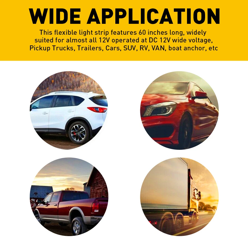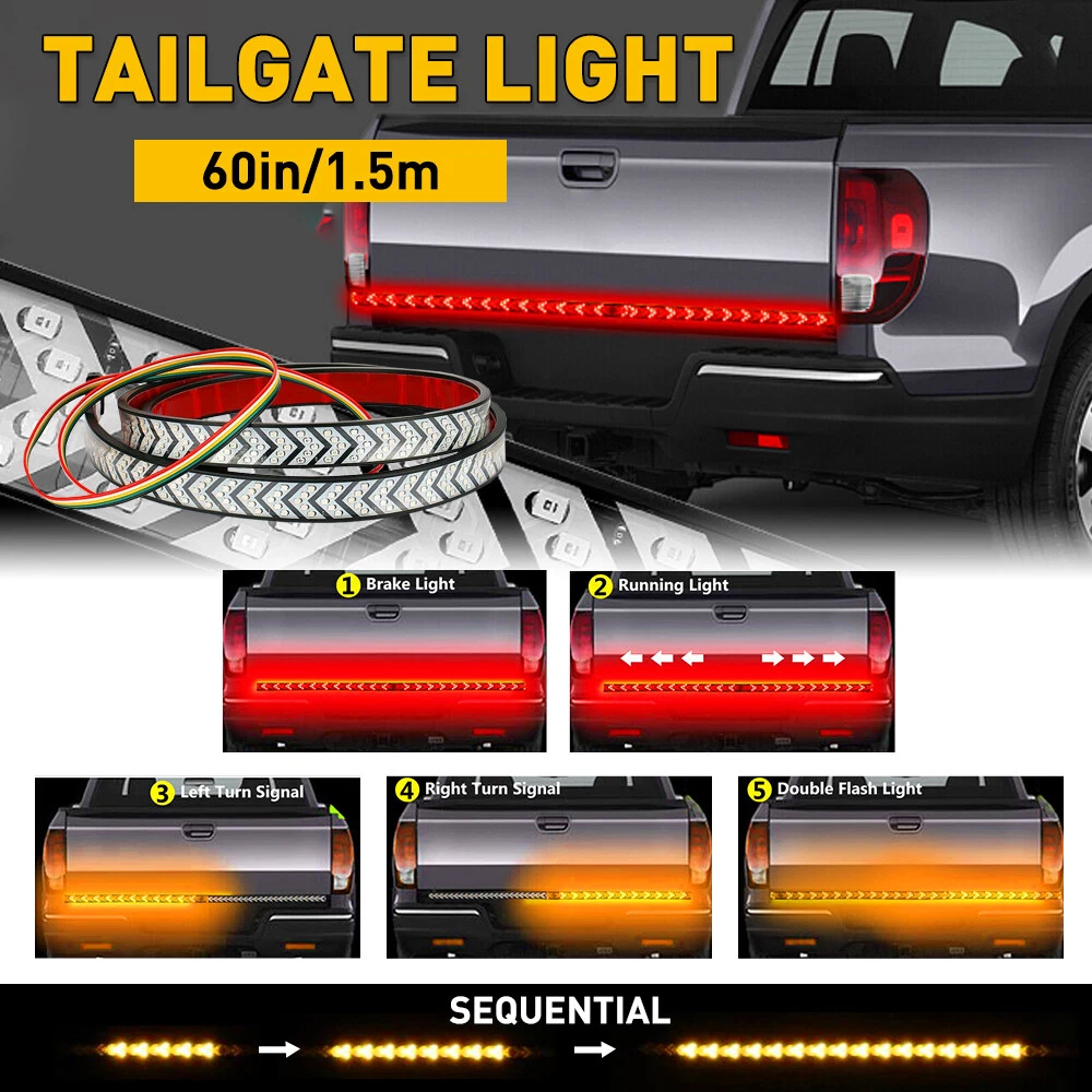 60" Truck Tailgate LED Strip Light Bar Reverse Brake Tail Stop Turn Signal Specifications: LED number: 540pcs(red 270pcs+ amber270pcs) LED type: 2835SMD Beads color: Red+Amber Product length: 60inch(1.5m) Waterproof grade: IP68 Voltage:12v Service life: more than 5000h+ Fit for: This flexible light strip features 60 inches long, widely suited for almost all 12V operated at DC 12V wide voltage, Pickup Trucks, Trailers, Cars, SUV, RV, VAN, boat anchor, etc Features: *More advanced with multiple models: 60" 540LED Truck Strip Tailgate Light Bar Reverse Brake Tail Flowing Turn Signal 60" Truck Tailgate LED Strip Light Bar Reverse Brake Tail Stop Turn Signal Specifications: LED number: 540pcs(red 270pcs+ amber270pcs) LED type: 2835SMD Beads color: Red+Amber Product length: 60inch(1.5m) Waterproof grade: IP68 Voltage:12v Service life: more than 5000h+ Fit for: This flexible light strip features 60 inches long, widely suited for almost all 12V operated at DC 12V wide voltage, Pickup Trucks, Trailers, Cars, SUV, RV, VAN, boat anchor, etc Features: *More advanced with multiple models: More advanced than other tailgate lights, our lights have multiple models for you to improve driving safety. (braking light, turn signal light, double flashlight, etc) *High Brightness: It is equipped with 540PCS LED beads (2835SMD) to enhance clear visibility for the rear drivers and better-ensuring safe traffic on roads. *Simple Installation: Our product with high-quality automotive adhesive makes it not fall off easily. *High Waterproof: IP68 waterproof rate makes it durable and works perfectly in rainy or snowy environments. *Durable This tail light with a fuse inside for short circuit prevention and service life-extending. *Wire connection and corresponding mode: 1. Black connects to negative 2. Red connects to driving light (Sequential red color(SCAN)) 3. Yellow and Green connect to turn signal light(Sequential amber color) 4. White connects to braking light(blink 3 times first, then steady red light) Packaging inclued: tailgate light*1 Item Specifics Fit For Red For: Driving Light, Brake Light ,Yellow For: Turn Signal Ligh Fitment Pickup Trucks, Trailers, Cars, SUV, RV, VAN, boat anchor, etc. LED Quantity 540 LEDs(270 Red LED Type 2835 Light Source Light String Length 60inch / approx. 150cm Housing Color black Type Truck Tailgate Strip Bar Brand Unbranded Manufacturer Warranty One Year Warranty Manufacturer Part Number LS-5R-60A2 Light Color Red/Yellow Lighting Technology led Placement on Vehicle Rear Fitment Type direct replacement Bulbs Included yes Luminous Flux 1200LM Material Plastic MPN Does Not Apply Package Height 3 Shell Material PVC Waterproof Rate IP68 Bulb Size 60" Voltage DC12V Payment Returns DESCRIPTION PAYMENT SHIPPING RETURN POLICY CONTACT US Shop Category Store Home LED Headlight ◈ H4 ◈ H13 LED FogLight ◈ H10 / 9145 / 9140 LED Reverse Light ◈ T15/921/W16W LED Side Marker Light Car Parts & Accessories Tail Light assemblies Other Hot Item Picture New List Item Driver Side Front Left Power Master Window Switch For 2016-2018 Hyundai Tucson USD 21.84 [Front+Rear]Amber+Red Clear LED Side Marker Lamp For 15-22 Challenger Dodge 4PCS USD 31.34 10Pcs Marker Lights 0.75in LED Truck Trailer Side Clearance Light Red Waterproof USD 11.39 Headlights Headlamps Halogen Left & Right Pair Set for VW Rabbit Jetta Golf GTI USD 105.44 2x Front Rear LHWindow Panel Switch Bezel Trim For Toyota Yaris 2012-2014 USD 37.99 Help & Info Payment Policy Shipping Policy Return Policy FAQ About Us 60" 540LED Truck Strip Tailgate Light Bar Reverse Brake Tail Flowing Turn Signal 60" Truck Tailgate LED Strip Light Bar Reverse Brake Tail Stop Turn Signal Specifications: LED number: 540pcs(red 270pcs+ amber270pcs) LED type: 2835SMD Beads color: Red+Amber Product length: 60inch(1.5m) Waterproof grade: IP68 Voltage:12v Service life: more than 5000h+ Fit for: This flexible light strip features 60 inches long, widely suited for almost all 12V operated at DC 12V wide voltage, Pickup Trucks, Trailers, Cars, SUV, RV, VAN, boat anchor, etc Features: *More advanced with multiple models: More advanced than other tailgate lights, our lights have multiple models for you to improve driving safety. (braking light, turn signal light, double flashlight, etc) *High Brightness: It is equipped with 540PCS LED beads (2835SMD) to enhance clear visibility for the rear drivers and better-ensuring safe traffic on roads. *Simple Installation: Our product with high-quality automotive adhesive makes it not fall off easily. *High Waterproof: IP68 waterproof rate makes it durable and works perfectly in rainy or snowy environments. *Durable This tail light with a fuse inside for short circuit prevention and service life-extending. *Wire connection and corresponding mode: 1. Black connects to negative 2. Red connects to driving light (Sequential red color(SCAN)) 3. Yellow and Green connect to turn signal light(Sequential amber color) 4. White connects to braking light(blink 3 times first, then steady red light) Packaging inclued: tailgate light*1 Payment Returns All rights reserved. On Nov 13, 2024 at 08:01:08 PST, seller added the following information:
