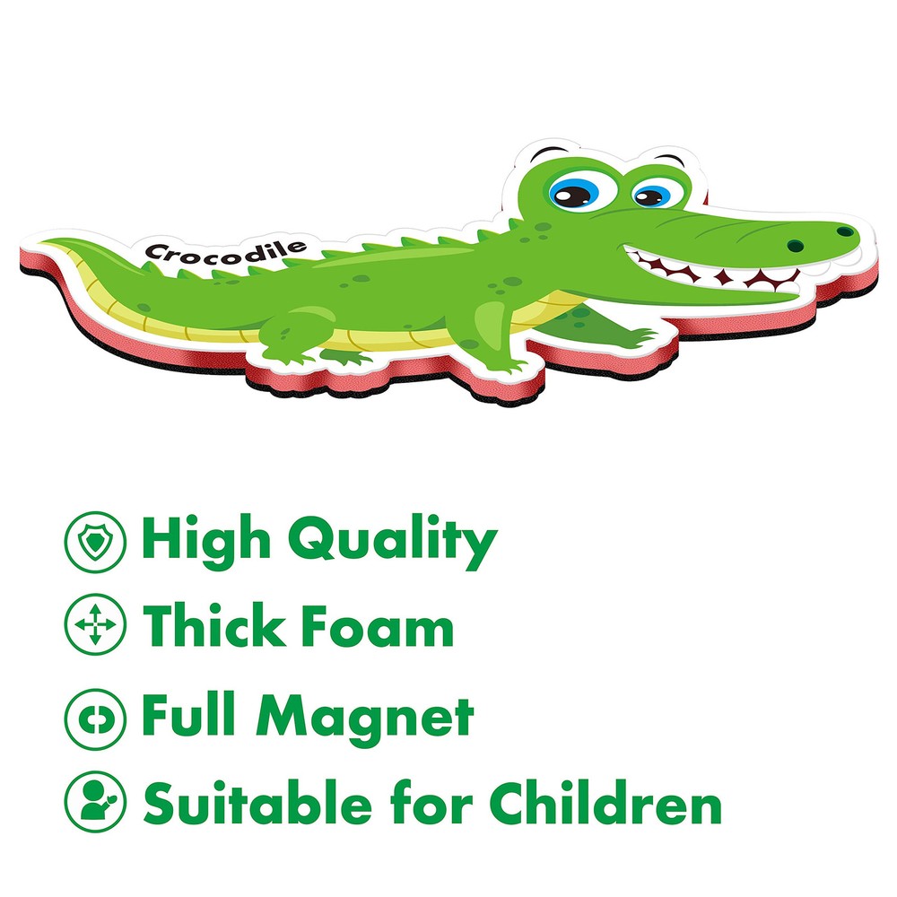 Cartoon Animal Family Set Includes: 60 funny and adorable animals like penguin and koala, the biggest mammal Blue Whale and Lion king of the forest etc. All sorts of creatures over the world. A great teaching aid for flexible motor skills development. Perfect for home education. Premium Quality: Thickened 0.2” EVA foam plus strong magnets. No harmful sharp corner, lightweight, ensure safety and easy manipulating. Printed with Non-high gloss ink and laminated with Anti-curl technology. Each measure about 2 – 3.5 inches. Smart Design: We have plenty of terrestrials, organisms and some sky friends in this compact set. Toddlers can experience the variety of realistically animal world. Enhance ’s memory and promotes sorting and grouping skills. Demonstration Ready: Segments are based with magnets, easy access for any magnetic background like fridge, whiteboard demonstration. Bright color catches toddlers’ attention and makes the figures easy to be identified. Visualized Knowledge:Help young students visualize and learning common animals, Enhancing sense of recognition. A great couple of storytelling.