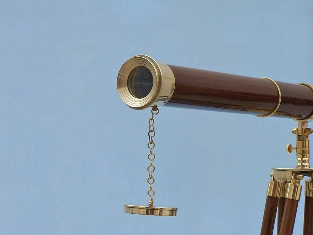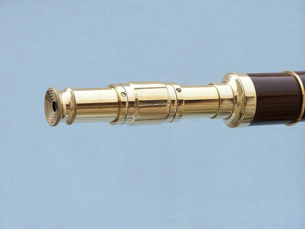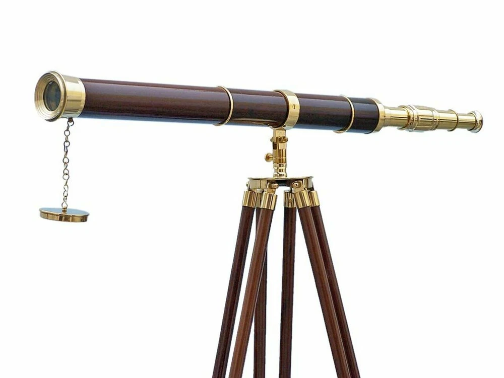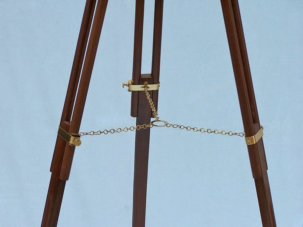 SIFAAT WORLD 60" Floor Standing Admirals Brass with Wood Fully Functional Telescope with Beautiful Wooden Tripod Stand (Replica) ; Nautical Home Decor Brand SIFAAT WORLD Water resistance level Not Water Resistant Focus type Center Focus About this item Handmade Retro Style Functional Brass with Wood TELESCOPE With Tripod Stand (Total Height With Tripod Stand i.e. TELESCOPE Mounted on Stand= 60 Inches approx.) Polished Brass Made Fully Functional TELESCOPE - Sturdy Wooden Height Adjustable Tripod. Protects The Objective Lens with Brass Metal Cap. Telescope Tube Length : 39 Inches approx , Height Of Tripod : 60 Inches Maximum approx . TELESCOPE Suitable For Home & Office, Balcony Decor, Decorative Prop, Hallway, Living Room and Many More. Shiny Polished Brass Finish - Classic Interior Designed by Our 20 Years Experienced INDIAN CRAFTSMEN. Focusing Is Accomplished by Adjusting the Eye Piece Ring On the TELESCOPE Tube With Upto 15x Magnification. Manufactured & Sold By SIFAAT WORLD from INDIA. This SIFAAT WORLD 60" Admiral's Floor Standing Brass with Wood Telescope is a Beautiful, 100% Brass, refractor telescope mounted on a wooden tripod. The perfect gift for the nautical explorer, t his telescope is a fully functioning nautical masterpiece that adds class and sophistication to any room. The main scope is solid polished brass encased in wood, which shines beautifully when placed in the sunlight. Focusing is accomplished by adjusting the eyepiece ring on the telescope tube, with up to 15x magnification. A removable brass cap, connected by a chain, protects the objective lens. The wooden tripod stand features smooth, polished round legs, each with solid brass fittings and a screw release to let you adjust the height. A solid brass chain holds the three wooden legs together to maintain the telescope's position. Dimensions : 32" Long x 25" Wide x 60" High 15X Magnification Polished Brass telescope body; Wood wrapped Glass optics for a clear view (not plastic lenses) Fully functional telescope focuses and magnifies Sturdy wooden tripod supports telescope when standing Some Special features of this Beautiful TELESCOPE are given below : 1. 15x Magnification gives Ultra Large Image Size. 2. Fully Functional Zoom-Able TELESCOPE For Distance Sight-Seeing. 3. Adjustable Height Of The Tripod Legs With Ease as your comfortability. 4. Beautiful Wooden Tripod Supports And Steadies, made of best quality wood & Leather. 5. Perfect For Collectible Gifts Ideas. 6. Made by Our 20 Years Experienced INDIAN CRAFTSMEN . 7. Focusing Is Accomplished by Adjusting the Eye Piece Ring On the TELESCOPE Tube. 8. Long Lasting , HANDMADE ITEM- Perfect For MOTHER'S day, FATHER'S day, Christmas GIFTS, etc. 9. Best for gift purpose to your loved ones !!! 10. Made in INDIA, Loved By the WORLD. Sold & Manufactured By SIFAAT WORLD From INDIA .