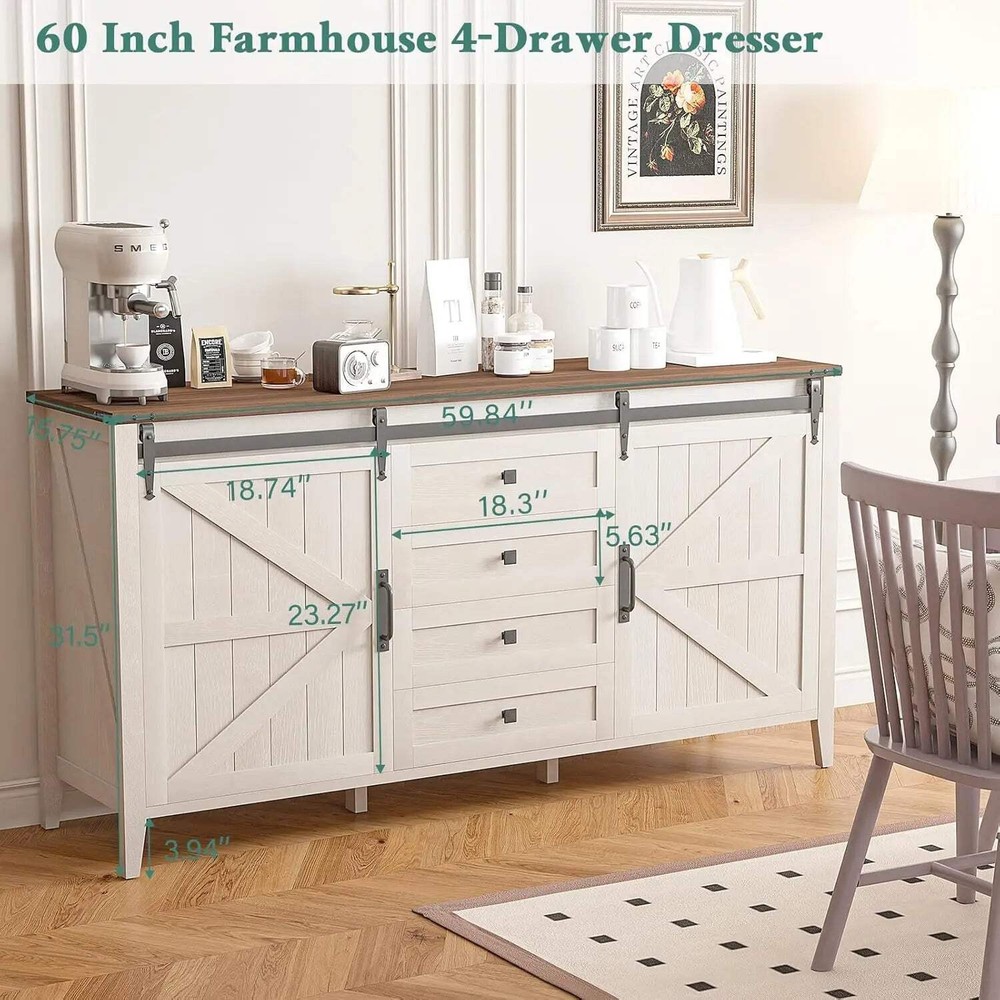 60 Inch Farmhouse Dresser 4 Drawers Rustic Chest of Drawers Bedroom Transform Your Space with the Ljustra Farmhouse Dresser Elevate your home decor with the Ljustra 60 Inch Farmhouse Dresser, a beautifully crafted piece that combines rustic charm with modern functionality. This dresser is designed for those who appreciate vintage style and practical storage solutions. Key Features: Rustic Chest with Natural Texture: The authentic wood texture and vintage metal handles add character to any living space. Sliding Barn Doors & Adjustable Shelves: Effortless access to removable shelves, perfect for versatile storage options. Ample Drawer Storage: Four spacious drawers and shelf space for clothing, linens, and more. Dimensions: 59.84"W x 15.75"D x 31.5"H; Drawer dimensions: 18.3"L x 15.25"D x 5.63"H. Multi-Purpose Use: Ideal for bedrooms, living rooms, or hallways, enhancing any space with warmth and style. Safety First: Includes wall anchor for stability, smooth metal glides, and safety stops for added security. Bring home the Ljustra Farmhouse Dresser and enjoy the perfect blend of style and practicality! Explore more from Ljustra Dresser Home Decor Scandinavian Design 60 Inch Farmhouse Dresser 4 Drawers Rustic Chest of Drawers Bedroom Transform Your Space with the Ljustra Farmhouse Dresser Elevate your home decor with the Ljustra 60 Inch Farmhouse Dresser , a beautifully crafted piece that combines rustic charm with modern functionality. This dresser is designed for those who appreciate vintage style and practical storage solutions. Key Features: Rustic Chest with Natural Texture: The authentic wood texture and vintage metal handles add character to any living space. Sliding Barn Doors & Adjustable Shelves: Effortless access to removable shelves, perfect for versatile storage options. Ample Drawer Storage: Four spacious drawers and shelf space for clothing, linens, and more. Dimensions: 59.84"W x 15.75"D x 31.5"H; Drawer dimensions: 18.3"L x 15.25"D x 5.63"H. Multi-Purpose Use: Ideal for bedrooms, living rooms, or hallways, enhancing any space with warmth and style. Safety First: Includes wall anchor for stability, smooth metal glides, and safety stops for added security. Bring home the Ljustra Farmhouse Dresser and enjoy the perfect blend of style and practicality! Explore more from Ljustra Dresser Home Decor Scandinavian Design × × × × × × × Shipping info Click the Shipping & Payments tab above the listing description for more info FREE Shipping Click the Shipping & Payments tab above the listing description for more info! Additional delivery notes PICK UP OPTION Sorry, our items are NOT available for pick-up. PAYMENT Immediate payment is required upon selecting "Buy It Now" or upon checking out through the cart. We accept payment via U.S. PayPal accounts and all Major Credit Cards, Debit Cards & Google Pay. We are legally required to collect sales tax in those states and localities where we maintain a physical presence (nexus). The applicable amount of sales tax charged to an order will be calculated based on the shipment destination's state and local sales tax laws. Thank you for shopping with us on eBay! Additional Information No additional information at this time Ask seller a question You might also like Modern Black U-Shaped Corduroy Sectional Sofa w/ Chaise Lounges, 130" Wide Ljustra Convertible Sofa Bed with Pillow Sleeper Chair Living Room Bedroom Ljustra 87in Comfy Sofa Extra Deep Seats No Tool Assembly Living Room Ljustra 110 Inch Sleeper Sofa Sectional Bed with Storage Chaise Contact To contact our Customer Service Team, simply click the button here and our Customer Service team will be happy to assist. Ask seller a question © My Store Shipping & Payments Shipping is FREE for this item Payment Accepted Payment Methods Immediate payment is required upon selecting "Buy It Now" or upon checking out through the cart. We accept payment via U.S. PayPal accounts and all Major Credit Cards, Debit Cards & Google Pay. We are legally required to collect sales tax in those states and localities where we maintain a physical presence (nexus). The applicable amount of sales tax charged to an order will be calculated based on the shipment destination's state and local sales tax laws. Thank you for shopping with us on eBay! Returns Returns are accepted Items must be returned within 14 days of the auction ending Buyer will pay for return shipping. eBay integration by