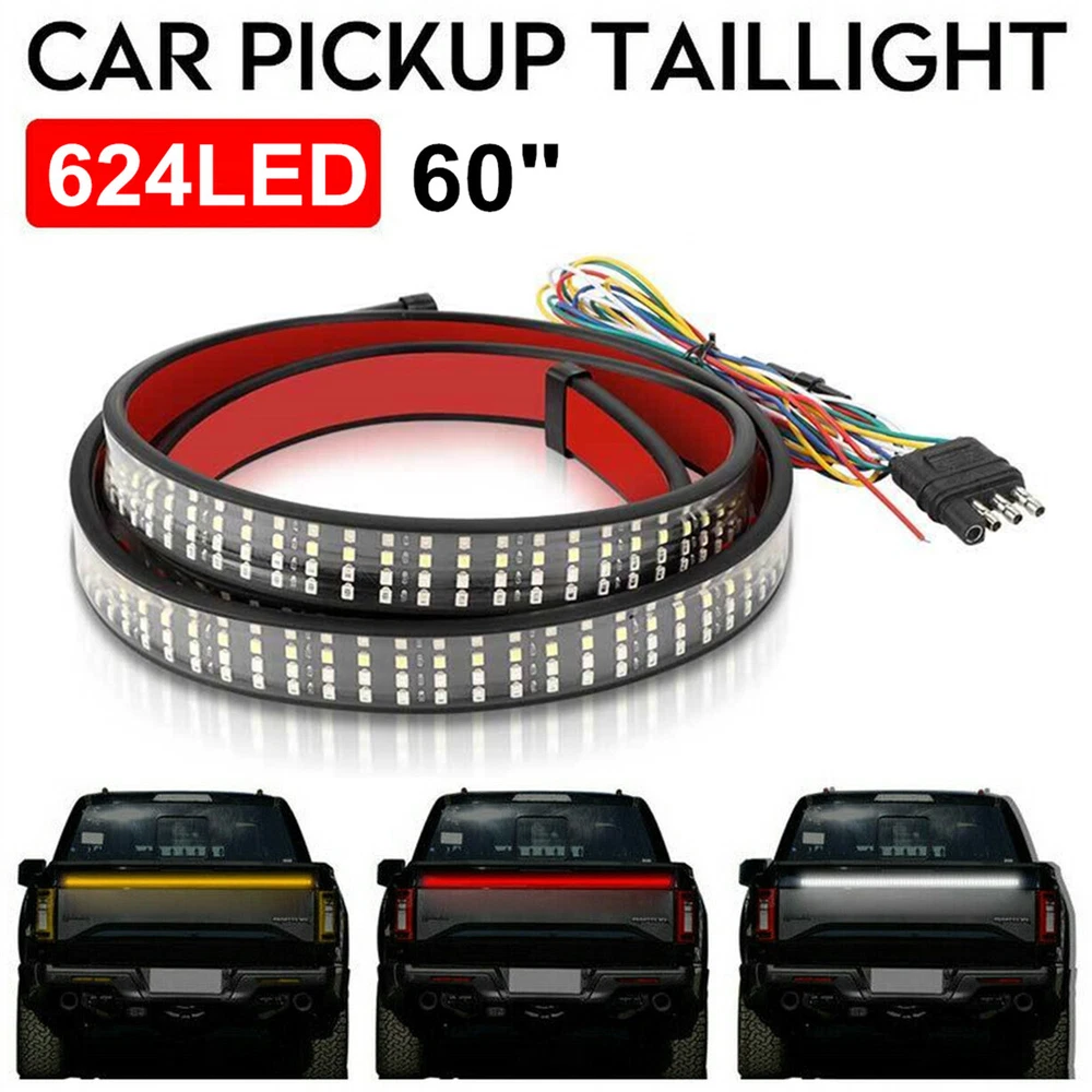Product Description Feature: Super Brightness: The new 60 Inch four row LED strip contains 624 2835smd led beads, and its lumen and output are three times brighter than ordinary tailgate lamps. The super bright three color design significantly improves the driver's safety on the road. Widely Used: The operating voltage is 12V, and the 60 '' bar is suitable for amber steering vehicles, such as most pickup trucks, off-road vehicles, etc. Multiple Functions: Driving light / brake light - all red LEDs are on (different brightness); Left rear turn signal lamp - left AMBER LED is on; Right rear turn signal lamp - right AMBER LED is on; Reversing lamp - white LED on. Wake up everyone behind you and reduce accidents in bad weather. High Quality: Made of fully sealed flexible silicone shell with IP68 waterproof grade, the durable tailgate lamp can work perfectly in rainy or snowy days. Epoxy resin process design, moisture resistance, service life of more than 50000 hours, on-line fuse short-circuit protection. Easy To Install: "No drilling" installation system. The standard 4-pin flat plug and self-adhesive tape with good conductivity can be easily pasted on any smooth surface, and the installation is simple without screws. Easy plug and play installation. UPGRADED 6-Function : Running mode, all red LEDs light up(low beam) Brake mode, all Red LEDs light up(high beam) Reverse mode, all White LEDs light up Turn left mode, left Amber LEDs sequentially light up Turn right mode, right Amber LEDs sequentially light up Hazard Emergency Double Flash Mode:left & Right indicator sequentially flowing from center to both sides. Specification: Type: Tail light strip Voltage: DC 12V LED power: 30W Shell material: PVC Shell color: Black Lamp bead type: 2835 light source Number of bulbs: 624pcs (four rows) Bulb color: white, red, yellow Waterproof grade: IP68 Length: 60inch/152cm Service life: 50000 hours Package Included: 1 X LED Tail light strip Note : 1. This light strip the single message type that will not let turn signals work when brakes are applied . 2.The only thing you can tap from the 7pin trailerconnector is the ground and reverse, the other's will trigger 'trailer connected.' 3.lt doesn't matter what vehicle or light bar it has. All 2015+ Fords will detect when a trailer is plugged into the wiring harness. Regardless if it's the 4 or 7pin. It is why any additional lights on the rear have to be triggered by the tail light circuit. Shipping Returns Payment Contact US Items are generally shipped out in 1-3 business day after your payment has been cleared (Sat. & Sun. excluded.) Orders from the United States Warehouse will be shipped out via USPS or UPS. The shipment usually takes 2-5 business days(Saturday and Sun day excluded), if you need the item urgently, please contact us for detail before purchasing. Local pick up is not available. Orders from China will be shipped via EDIS or China Post.The shipment will take 10-15 working days to US,take 20-35 working days to other countries,part of countries will take more days,please contact us if you didn't get the parcel for a long time. You have 60 days to return it from the date it was received. All returned items must be in the original package and you must provide us with the shipping tracking number,specific reason for the return and your ebay ID. We will refund your full winning bid amount , upo n receipt of the item in its original condition and package with all components and accessories included. Import duties,taxes and charge are not included in the item's price or shipping cost.These charges are the buyer's responsibility. Please check with your country's customs office to determine what these additional costs will be prior to bidding or buying. Insurance is included in the Shipping & Handling costs paid. Dear buyers,we appreciate your business, if you are satisfied with our service , please leave us a Positive feedback and rate the details of the transaction (Detailed Seller Ratings) with a "Pefect Stars ". We aim to provide best services and products in exchange your maximum statifaction. We will do our best to resolve your issue till your satisfaction. All emails will be answered within 24 hours except weekends and holidays. Shipping Items are generally shipped out in 1-3 business day after your payment has been cleared (Sat. & Sun. excluded.) Orders from the United States Warehouse will be shipped out via USPS or UPS. The shipment usually takes 2-5 business days(Saturday and Sun day excluded), if you need the item urgently, please contact us for detail before purchasing. Local pick up is not available. Orders from China will be shipped via EDIS or China Post.The shipment will take 10-15 working days to US,take 20-35 working days to other countries,part of countries will take more days,please contact us if you didn't get the parcel for a long time. Returns You have 60 days to return it from the date it was received. All returned items must be in the original package and you must provide us with the shipping tracking number,specific reason for the return and your ebay ID. We will refund your full winning bid amount , upo n receipt of the item in its original condition and package with all components and accessories included. Payment Import duties,taxes and charge are not included in the item's price or shipping cost.These charges are the buyer's responsibility. Please check with your country's customs office to determine what these additional costs will be prior to bidding or buying. Insurance is included in the Shipping & Handling costs paid. Contact US Dear buyers,we appreciate your business, if you are satisfied with our service , please leave us a Positive feedback and rate the details of the transaction (Detailed Seller Ratings) with a "Pefect Stars ". We aim to provide best services and products in exchange your maximum statifaction. We will do our best to resolve your issue till your satisfaction. All emails will be answered within 24 ho