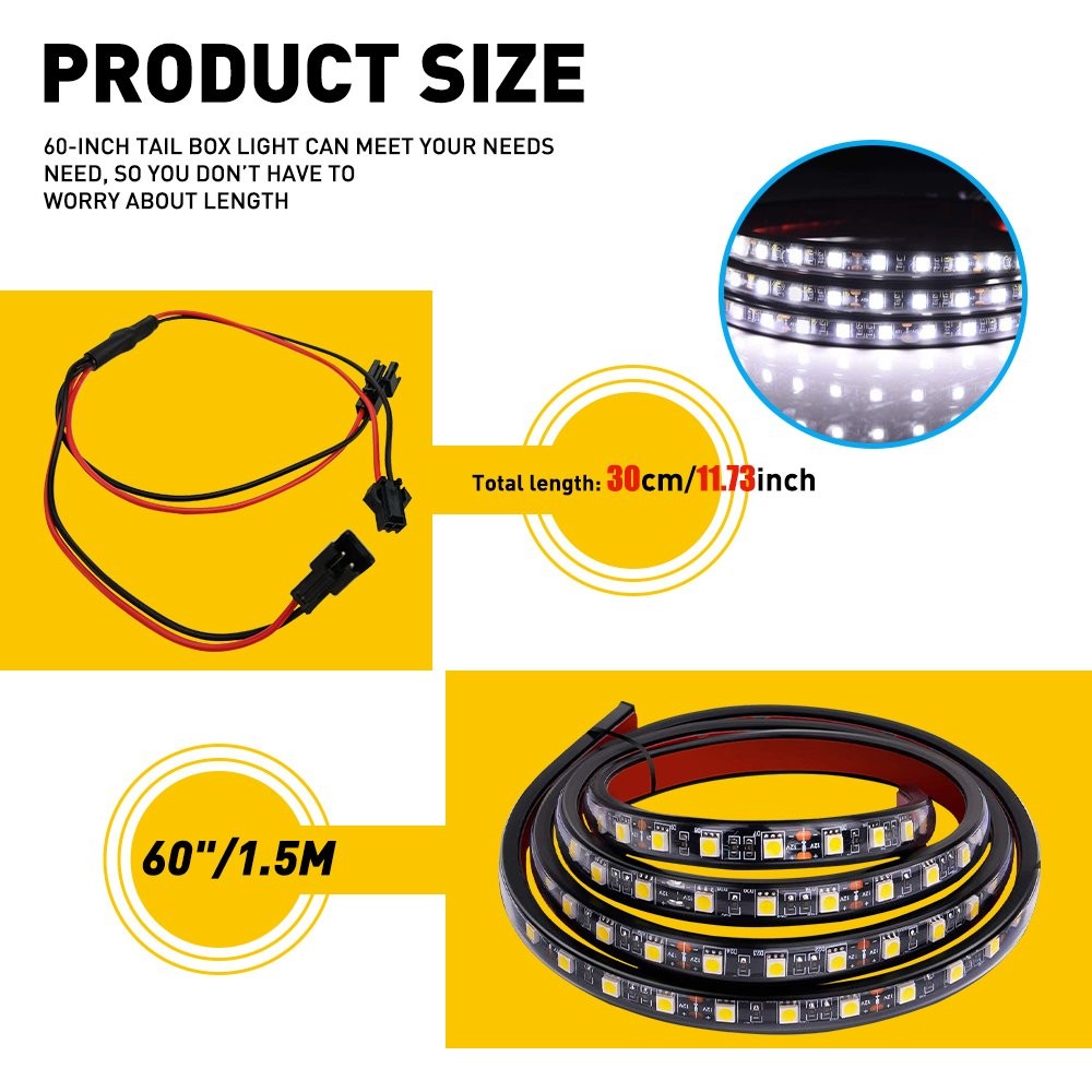 gtin13: Does not apply Type: Bed Cargo Trunk White Light LED Material: Plastic Brand: AUXITO Color: White UPC: Does not apply Manufacturer Warranty: 1 Year Manufacturer Part Number: 60INCHES-BED CARGO LIGHTs-PKWXD-1.5M Fitment Type: Direct Replacement Other Part Number: LED STRIP BAR LIGHT
