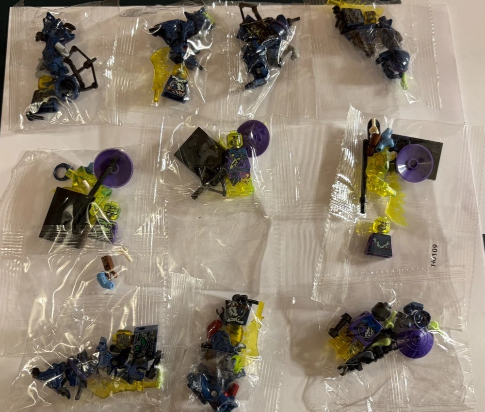 Massive Bundle of 60+ Non-genuine Lego Ninjago Minifigures. Please note that these are not genuine lego minifigures. There is a mix of figures from Ninjago including: Ninjas Ghosts Serpentine Skeletons Miscellaneous others All highlighted as per the images. In case you have any other questions please feel free to ask!