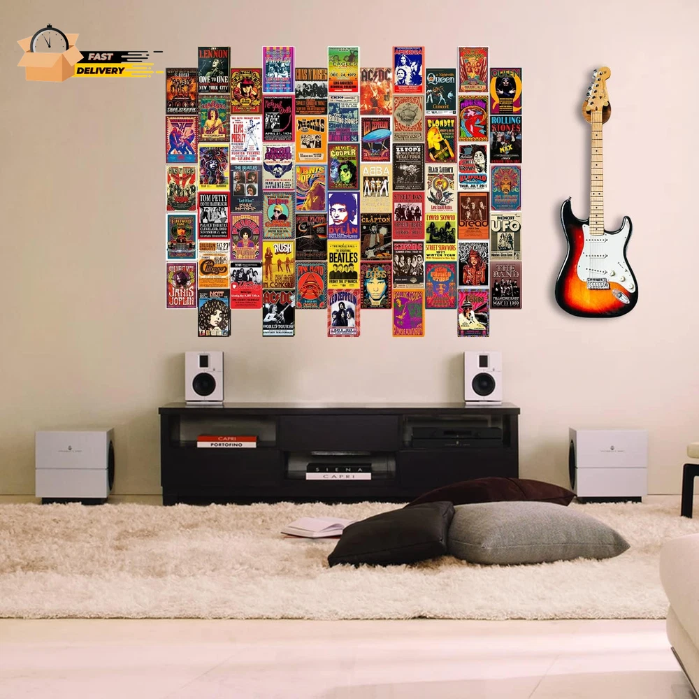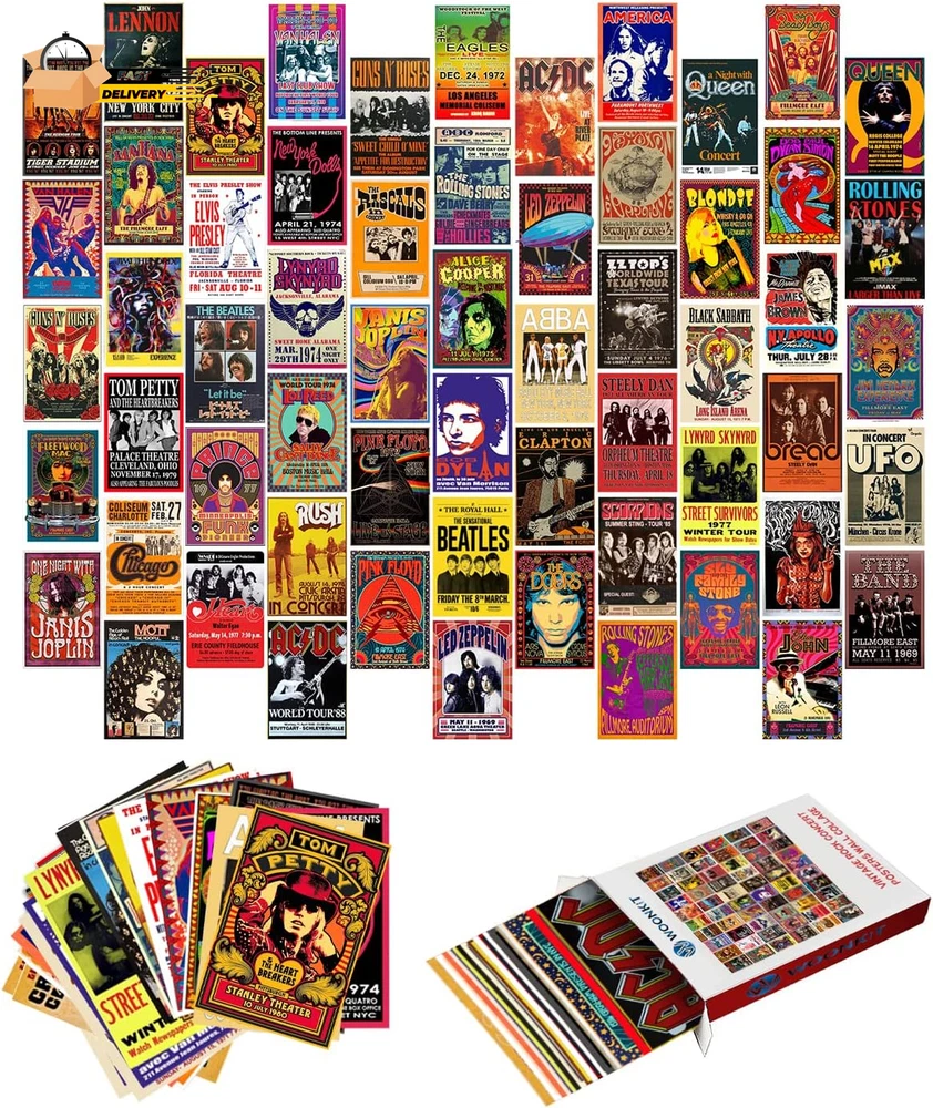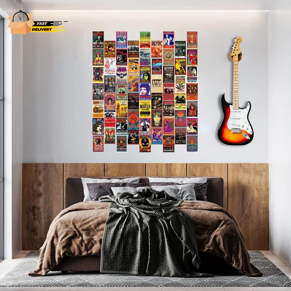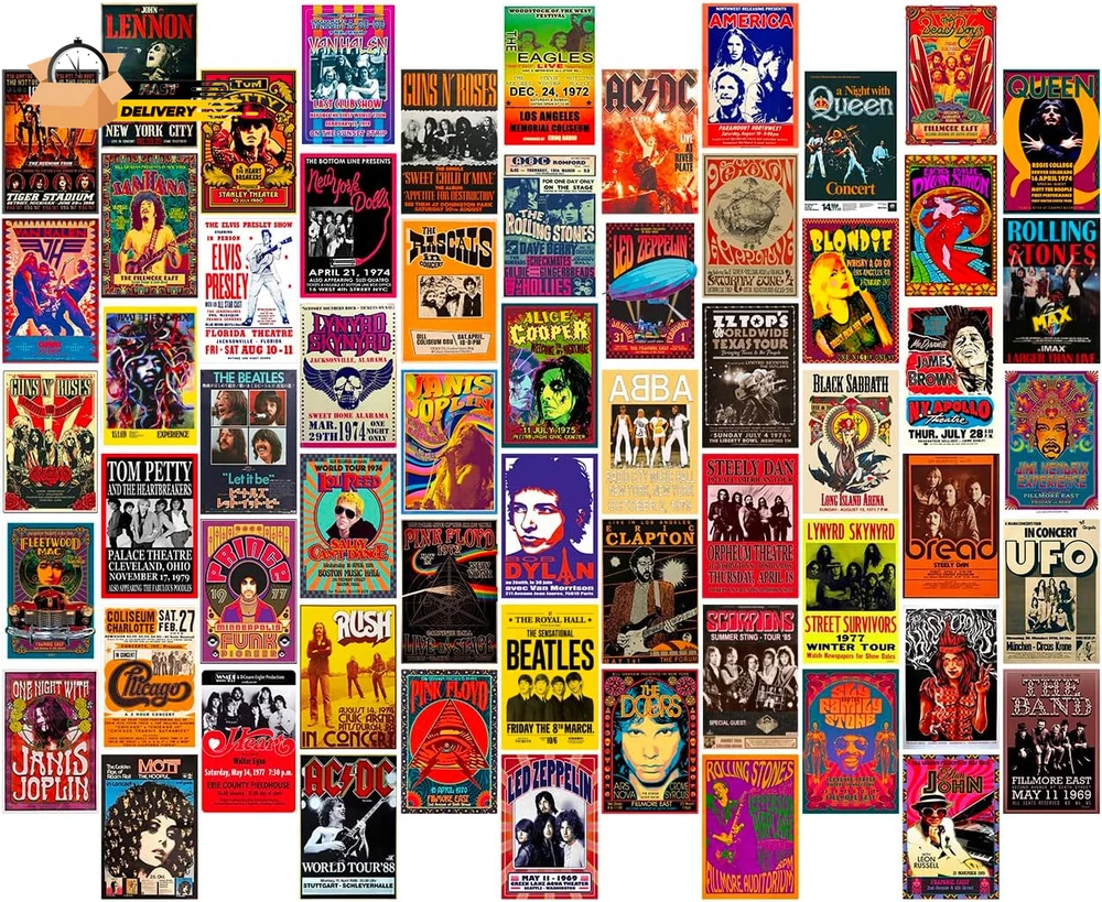 60 PC Vintage Rock Band Posters, 70S 80S 90S Retro Concert Prints, Bedroom Wall
