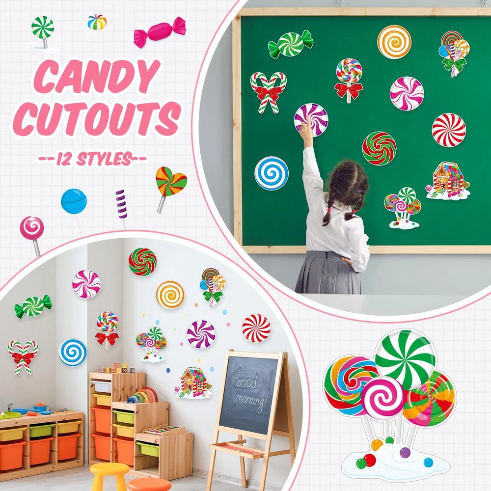 Features: Candy Christmas party decorations: Ideal for decorating any inside front door or wall, office door, bulletin board, etc., these candy cutouts decorations will elevate your party's ambiance Candy cutouts for classroom: These lollipop cutouts can also be applied as teaching aids or gifts for children, catering to home schools, kindergartens, and preschools Peppermint cutouts: These striking colors and vivid designs will surely enhance your party's fun and create a sweet and romantic candy world that will be a total hit among your guests, especially children Specifications: Material: cardboard Size: as picture shown Color: as picture shown Package Includes: 60 x candy cutouts 5 sheets x glue points Note: 1. The size may exist little difference due to hand manual measurement. Due to the screen display, the color of the may differ slightly from the picture. Package Includes: you will receive 60 pieces candy cutouts including 12 different styles and each pattern has 5 pieces, equipped with 5 sheets glue points; Enough quantities and rich patterns can meet your diverse decoration needs, creating sweet atmosphere Material: the candy bulletin board decorations are made of quality cardboard, duble-sided printed with bright color and cute patterns, reliable and sturdy, non-and waterproof, which won't fade or smudge over time and can provide long-lasting services to your classroom or home Size Information: our candy classroom decorations come in different size about 4.7inch/12 cm; Each candyland cutouts has plenty of writing room; You can DIY them into desk tags, invitations, postcards, Christmas tree crafts, gift cards, classroom projects, games without leaving traces Colorful Candy Theme Design: these candy bulletin board set are designed with green, red, purple, yellow, blue colors and cute patterns such as big lollipop, candy with bow, candy house; Vivid and lovely patterns will give people a lively feeling and inspire children's interest in learning Wide Applications: these peppermint lollipop cutouts decorations can add sweet and festive mood, which is suitable for Christmas classroom bulletin boards, Christmas crafts, Christmas ornaments, candy party supplies, lollipop parties, , wedding parties, baby shower, winter calendar and holiday decorations