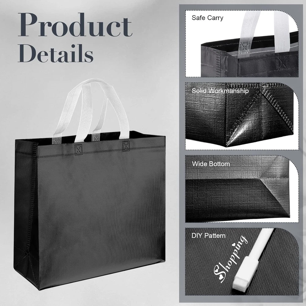 Store New Arrivals Add to Favorite View Feedback Contact 60 Pcs Reusable Gift Tote Bags Grocery Shopping Bag with Handles Thank You Gift Bags for Bridesmaid Wedding Christmas, 12.6X10.6X3.9''(Black) Description Closure Type Open Top Item Dimensions L x W x H 14.96"L x 13.78"W x 4.72"H Color Black Handle Material Polypropylene Material Fabric non woven fabric Number Of Pockets 1 Lining Description Polyester Subject Character sports Fabric Type Non Woven Product Care Instructions Machine Wash size Large Non Woven Imported Plentiful Quantity for Usage: the package includes 60 pieces of bridal party totes bags in bright and glossy color, which are sufficient for you to apply in daily life to storage diverse items and wrap present boxes; Note: the color of the product will be different under lighting and natural light Reliable Material: the glossy reusable gifts are made of spunlace non woven fabrics with aluminized film, wear assistant and flexible, non flammable and long lasting, which can provide a long service life for you Beautiful Shopping Bags: the non woven reusable tote bags feature smooth glittery surfaces and classic color, adding a sense of modern and elegance; With the blank on the shopping bags, you can use your imagination to DIY and create a distinctive design Practical Design: the non woven reusable tote bags adopt the design of crossed and fixed reinforcement at the intersection points of handles for holding heavy objects, making them not easy to break; Equipped with a flat bottom and wide sides, the glossy grocery bags possess a large capacity Wide Range of Applications: the set of reusable bags is suitable for household use or shopping stores, which can be applied as bridesmaid tote bags, wedding bags, party favor bags, Christmas goodies bags, shopping bags and more Product Description Gold, Rose Gold, Silver 60 PIECES Multicolored 60 PIECES Rose Gold 60 PIECES Silver 60 PIECES ABOUT US We offer the best prices around on high quality products. Our E-store includes media such as books, movies, music and games while offering electronics, toys, sporting apparel, clothing, tools, general home, garden items and more. SHIPPING We are always working hard to ensure your package arrives as soon as possible. Please understand that some factors like weather, high postal traffic, and the performance of shipping companies are outside of our control. We offer free shipping to the lower 48 states and ship within 2 business days of payment, usually sooner. We do not accept P.O. Boxes. Please provide a physical address. For shipping outside of the continental USA, we only use eBay's Global Shipping Program.The item is shipped to KY and then sent to the rest of the world. International customers are responsible for all duties and taxes. Continue to check out in order to calculate costs for shipping the item to your country. Messages regarding eBay's Global Shipping Program MUST be directed at eBay EXCLUSIVELY. RETURNS We offer a 30-Day Return Policy on items which you are not completely satisfied with. You have the option for a full-refund or an exchange of the item. No returns are available on items shipped outside of the USA. PAYMENT We accept PayPal. CONTACT US This page content is yet to come Please ad us to your favorite seller and visit again later Thank You CUSTOMER SATISFACTION We try our very best to make sure every customer is completely satisfied. If there's a problem, message us! We're happy to help. WE ACCEPT Copyright © 2021 AutoDS. | All Rights Reserved