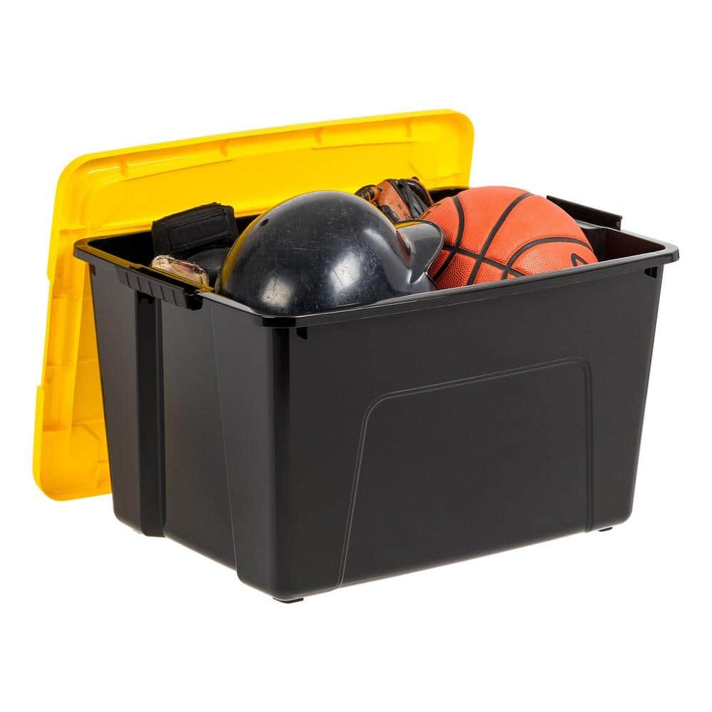 60 Qt Black & Yellow Plastic Storage Boxes with Latching Lids - Set of 6