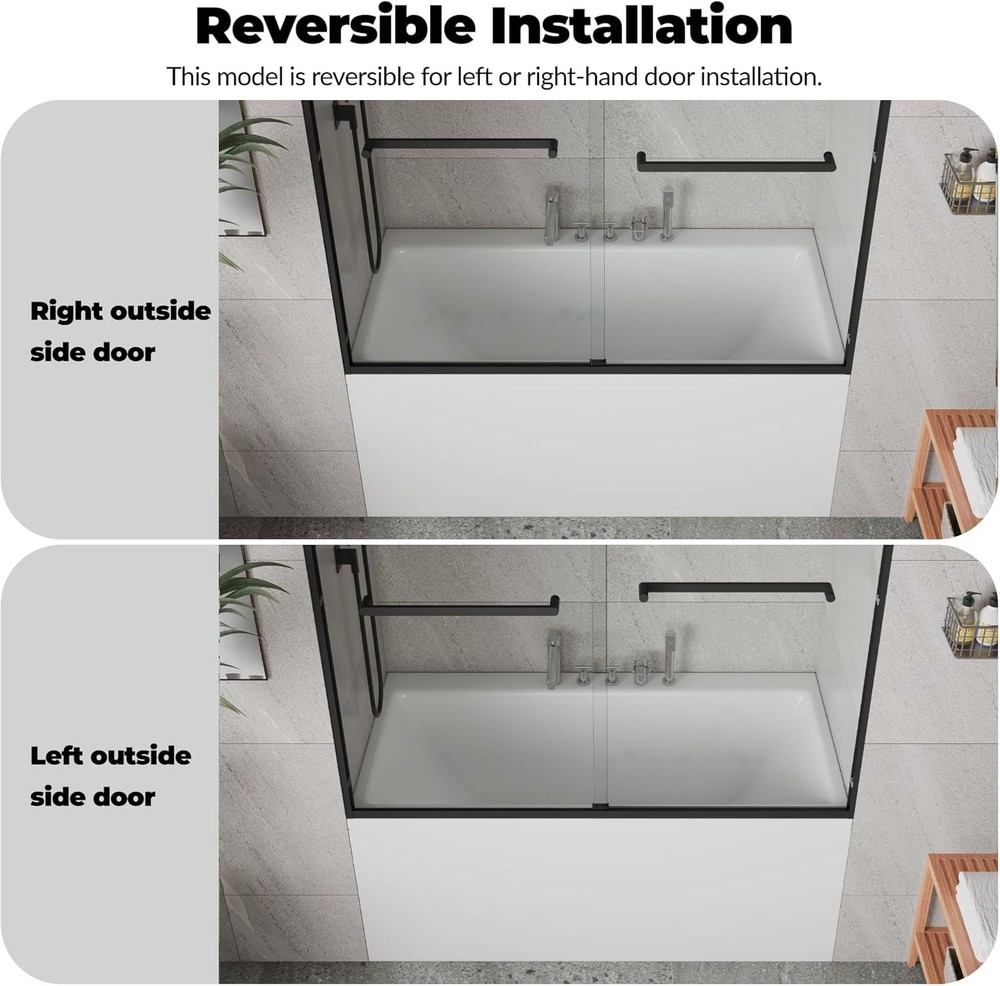 Product description 【Premium Tempered Glass – Clear, Strong & Easy to Maintain】Made from high-quality 8mm tempered glass (6mm on select models), this sliding shower door stays crystal clear and resistant to scratches, soap scum, and hard-water stains. The easy-clean surface keeps your bathroom looking fresh with minimal effort—perfect for busy, modern households. 【Leak-Proof Performance – Keep Your Bathroom Dry & Safe】Precision-fit seals and smooth-glide rollers create a reliable, water-tight barrier that prevents leaks and puddles. Ideal for daily use in family bathrooms—no slipping hazards, no extra cleanup. 【Smooth & Silent Sliding – Everyday Luxury You Can Feel】Engineered with durable stainless-steel tracks and upgraded rollers, this shower door delivers quiet, wobble-free movement. Enjoy a hotel-level sliding experience that adds a touch of comfort and refinement to your shower routine. 【Frameless or Framed Designs – Modern, Stylish & Versatile】Choose between a sleek frameless style that brightens and visually expands your bathroom, or a structured framed design for a more defined, elegant look. Available in Matte Black or Brushed Nickel finishes to complement both classic and contemporary décor. 【Quick Installation & Adjustable Fit – Perfect for Any Remodel】Fits 44–48 inch or 56–60 inch openings with ease. All essential hardware and step-by-step instructions are included, ensuring a straightforward setup. A smart upgrade for main, guest, or family bathrooms seeking durability, convenience, and timeless design. STAINLESS STEEL HANDLE The stainless steel handle is securely fastened to the glass doors, designed to withstand regular pulling and tugging without detaching. Additionally, it can double as a towel rack. Extreme Water Resistance Our frameless shower doors are equipped with waterproof cans and seals to ensure that moisture stays in the bathroom,allowing you to enjoy a dry and comfortable showering experience. Robust and Reliable Upper Guide Rail High-quality top rail fixings ensure that the door is stable and safe.Whether you pull it vigorously or use it frequently,our shower doors are long-lasting and durable.