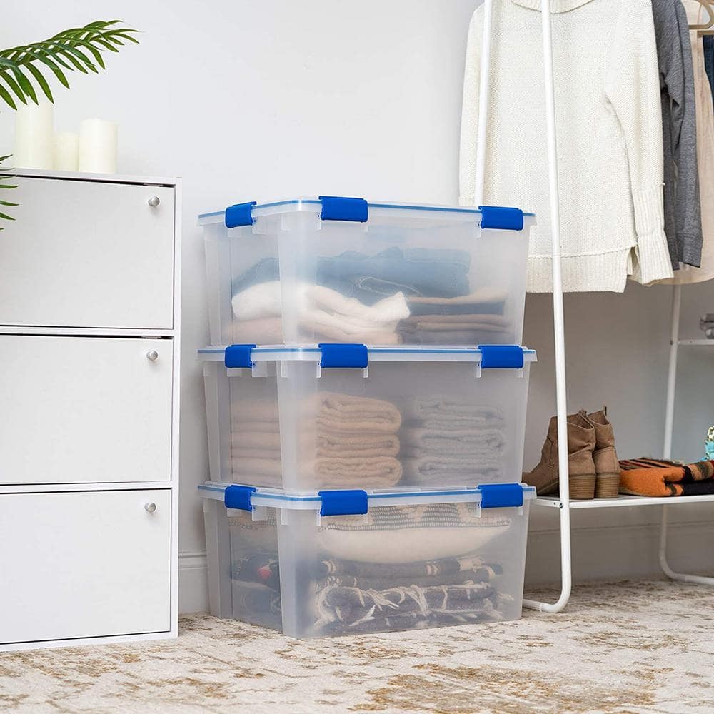 60 qt Clear Plastic Storage Bin with Lid - 3-Pack Set for Organization