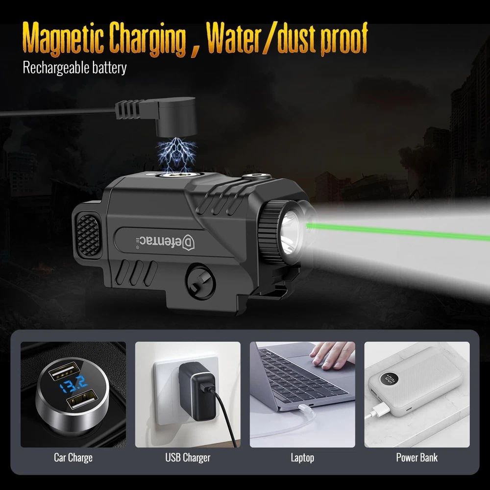 600 Lumens Tactical Flashlight with Green Laser Combo, Magnetic Charging