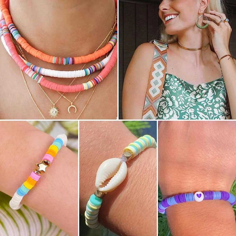 6000 Clay Beads Bracelet Making Kit, 24 Colors Flat Preppy Beads for Friendship ALL YOU NEED INCLUDED - A must for jewelry making lover. A box of about 5520pcs flat polymer clay beads in 24 colors and 550pcs charms kit( contains random letter beads, smile beads, colorful heart beads, shells, pendants, jump rings, lobster clasp, etc.), 2 roll of 5 meters elastic strings, a scissors, to meet all your needs for bracelets making & jewelry making VIBRANT COLORS - Polymer clay beads in 24 bright colors meet your requirements of colorful DIY objects. You can make bracelets with mixed polymer clay heishi beads and your favorite pendants. We prepare all you need. You can make a charm vivid bracelet/ necklace/ earring easily. Imagination is more inportant than skills here for bracelet jewelry making PREMIUM QUALITY, SAFE TO USE - Beads are made of polymer clay, strong plasticity, and durability. The diameter of clay heishi beads is 6mm with a 2mm hole and thickness is 1mm. The clay beads for bracelets are lightweight, not easy ro fade, comfortable to wear when you wear it at the beach or pool POLYMER CLAY BEADS WIDE USE - Perfect size for DIY crafts like jewelry making, bracelets, necklaces, earrings, anklets, keychains, and any ornaments. It’s an ideal gift adding some decorations for your daughter, granddaughter, sister, besties. A meaningful and cheerful gift choice for birthdays, Valentine's Day, Mother's Day, Christmas, Thanksgiving Day, etc TEEN GIRLS GIFTS TRENDY STUFF - It’s time to bring this trendy gifts home to surprise your girls. This friendship bracelets kit not only to enhances girls crafts skills but also a way to enjoy the fun of sharing and self-expression. An excellent crafts gift for girls crafts projects party 7.44 inches x 9.19 inches x 0.75 inches. Weight: 1.0 lb Age Range Description 6+ years old Style Classic Additional Features Adjustable Elastic Strings Number of Pieces 6000 Model Name Bracelet making kit Item Dimensions 9 x 7 x 0.7 inches Color Multicolor Material Type Polymer clay, plastic Theme Jewelry Size Small Age Range (Description) 6+ years old Seasons All Seasons Art Craft Kit Type Bracelet Making Kit Included Components A box of about 5520pcs flat polymer clay beads in 24 colors, 550pcs charms (contains random letter beads, smile colorful heart shells, pendants, jump rings), 2 roll 5 meters elastic strings, a scissors, and lobster clasp. Subject Character Jewelry Cartoon Character Jewelry