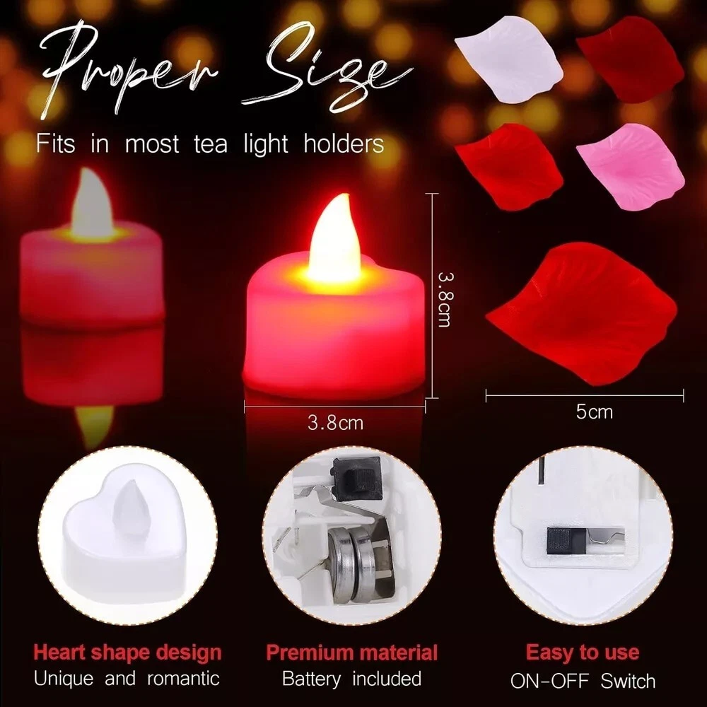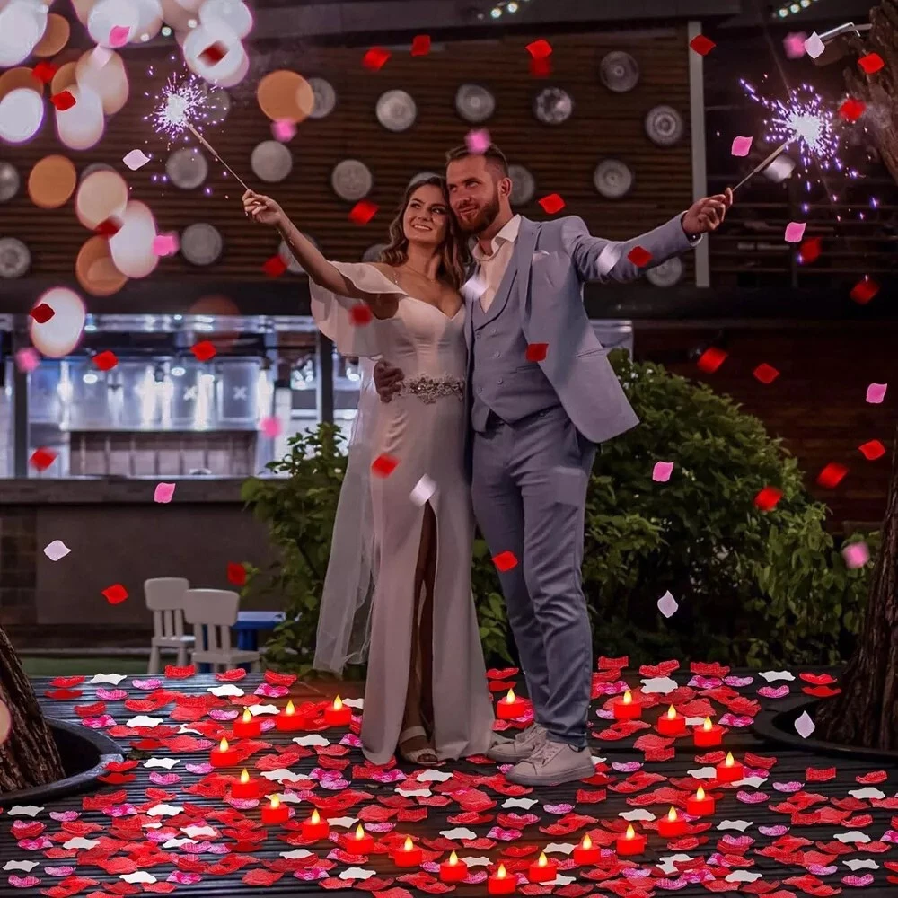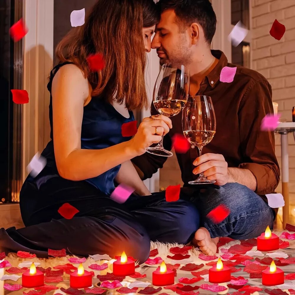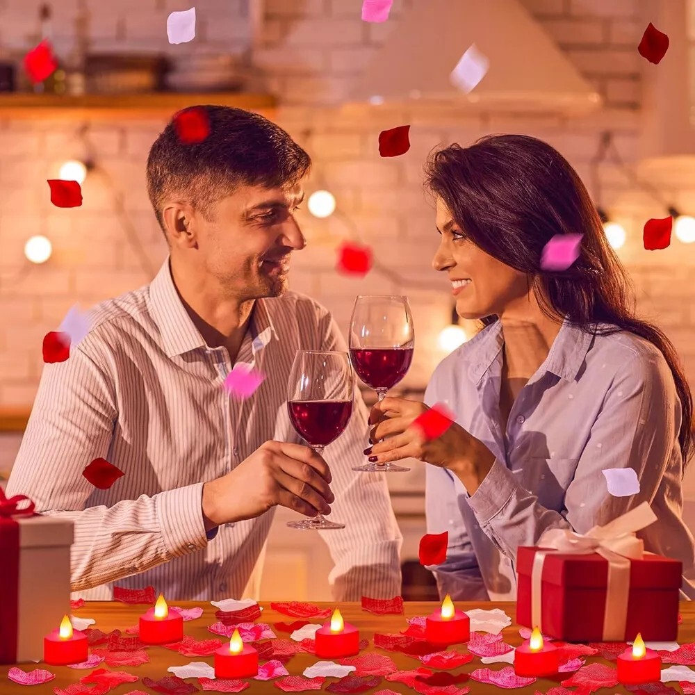 6000 Valentine's Day Artificial Rose Petals with 72 LED Tea Lights for Romantic Decor